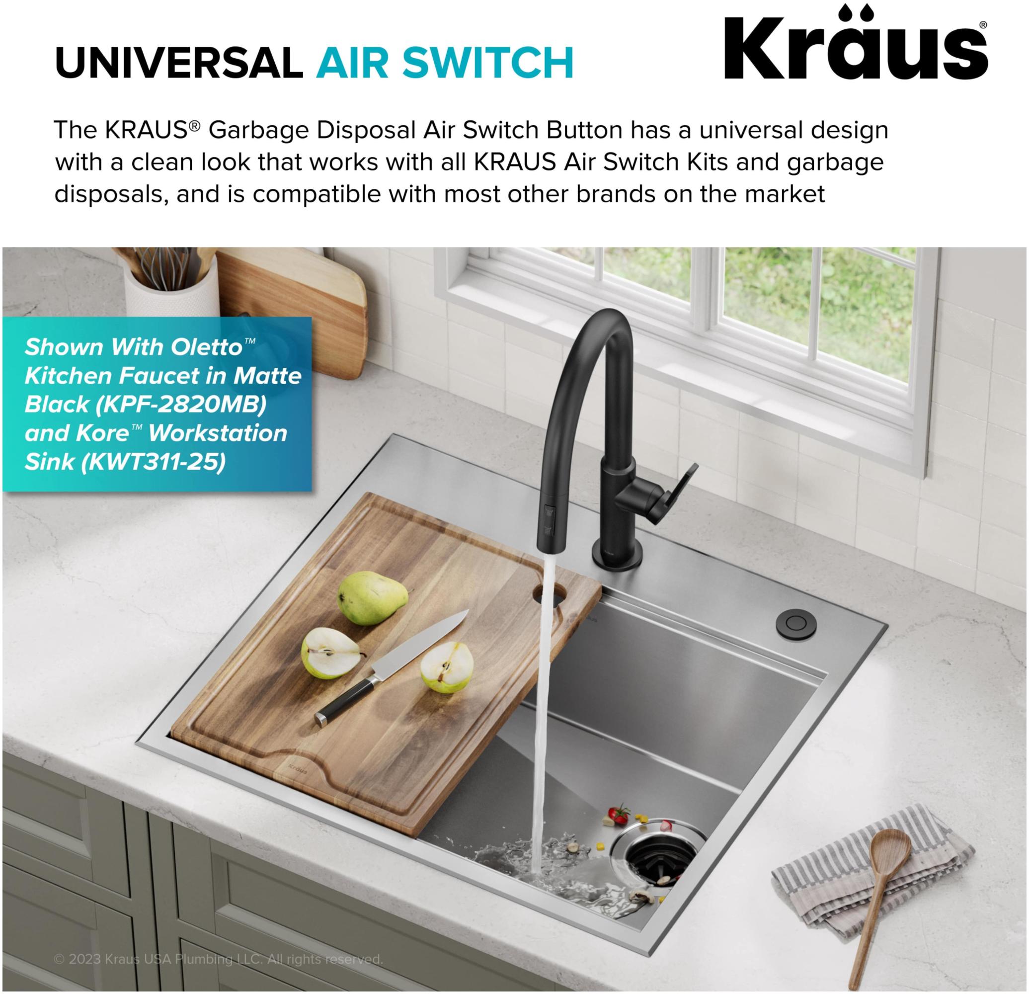 - Garbage disposal air switch button has a universal design that works with all Kraus air switch kits and garbage disposals
