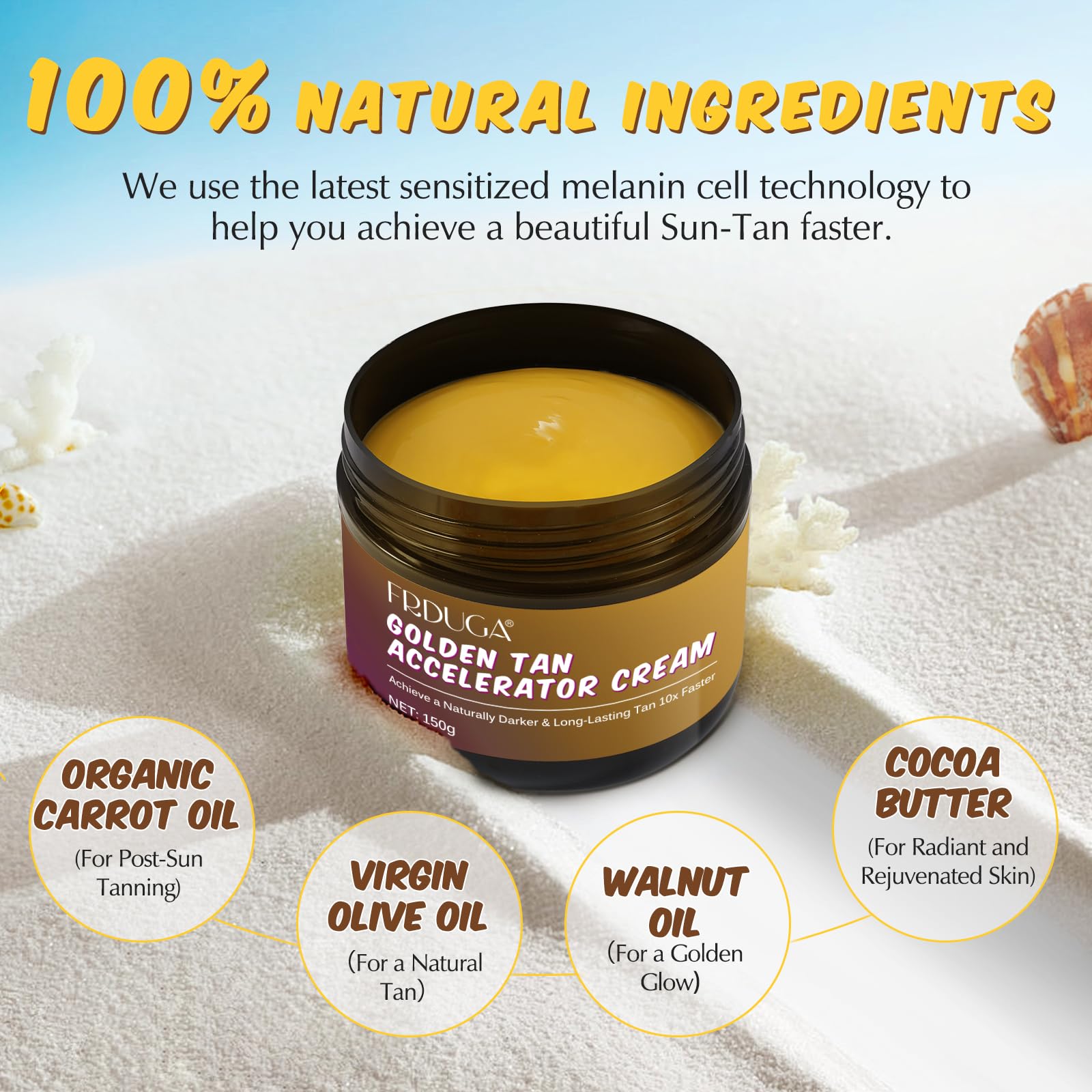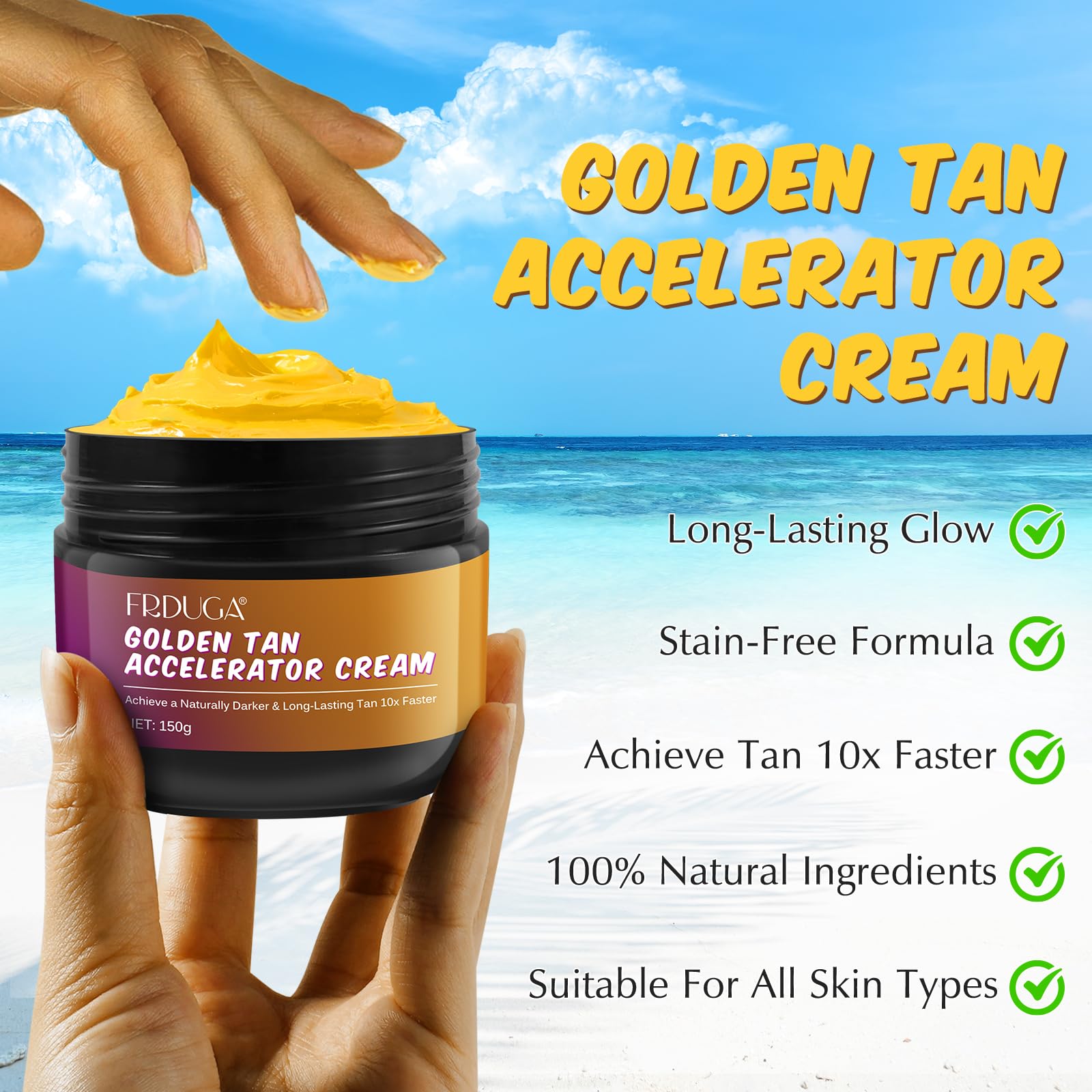 ☀️Golden Tanning Cream lotion helps intensify your golden glow & lets you achieve a darker color payoff; More natural, more intensive, and longer-lasting tan.