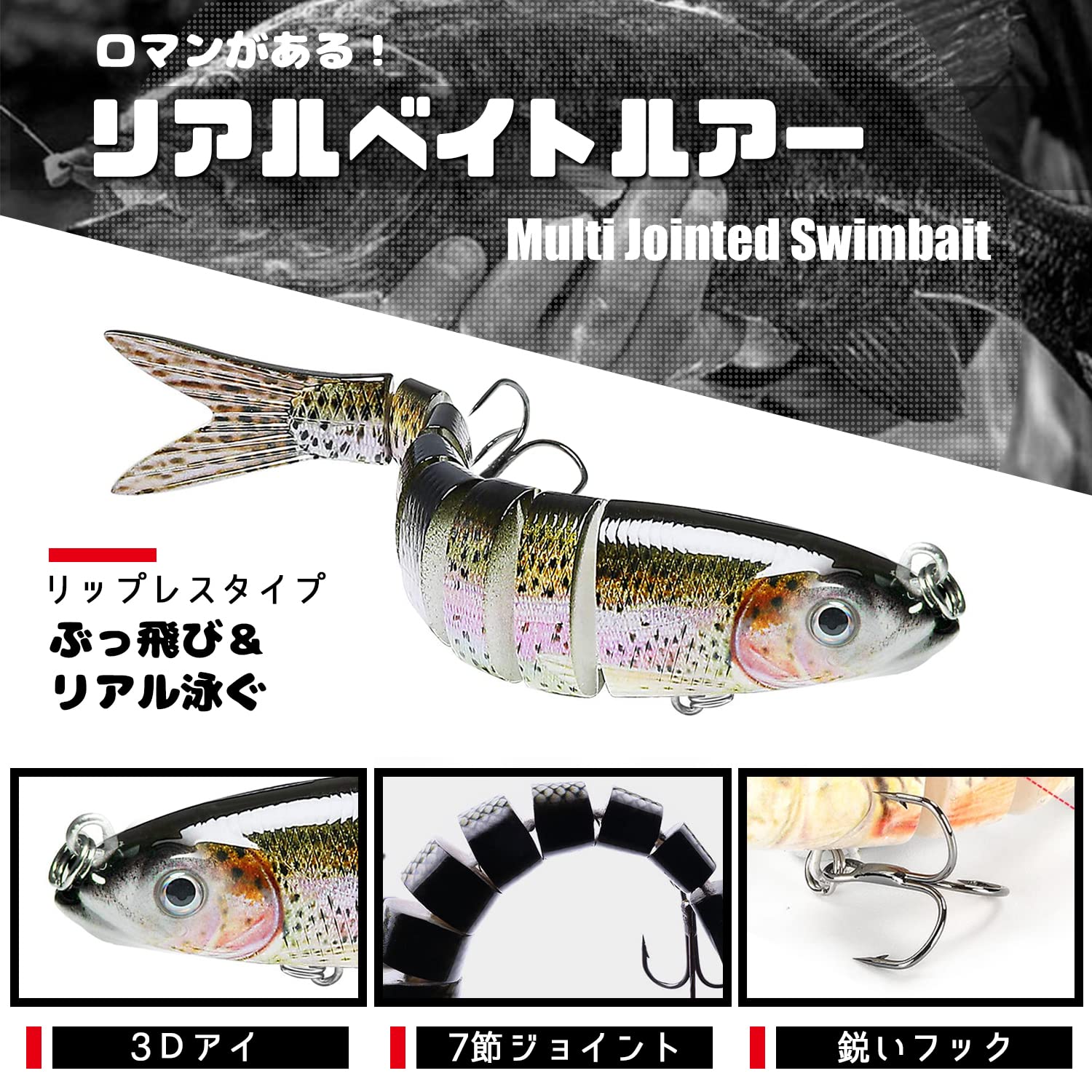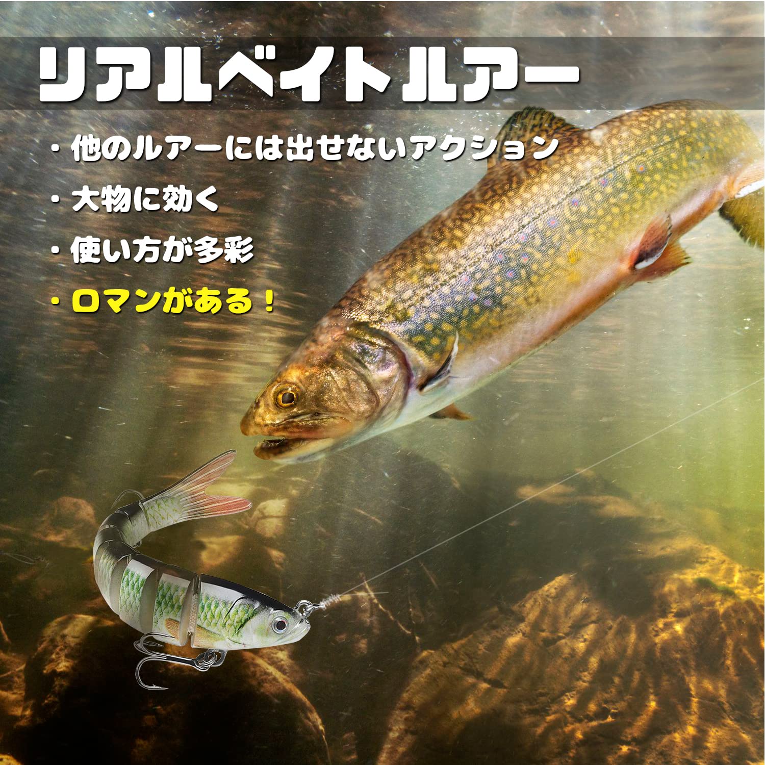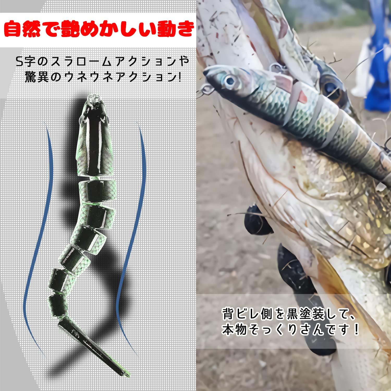 The lipless jointed lure allows for flexible control. This single lure can be used in a variety of ways, including simple reeling, dead-slow reeling, twitching, and jerking. Target fish: black bass, sea bass, bluefish, trout, grouper, grouper, dolphinfish, hairtail, red sea bream, and more.