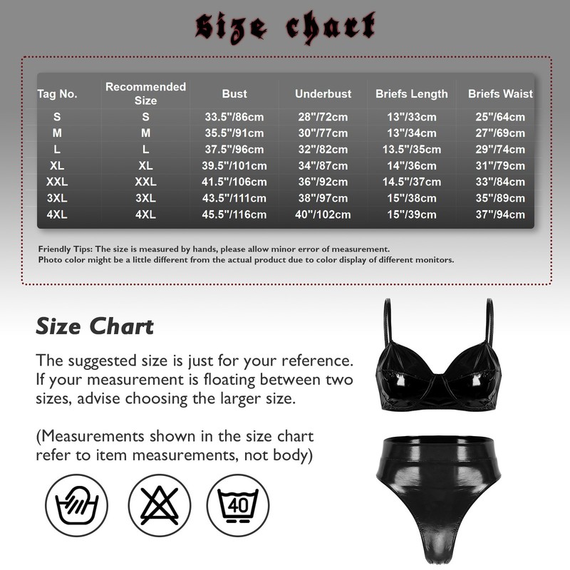 Woman Wet Look Patent Leather Bra Panty Lingerie Crop Top Bustier Thong Babydoll