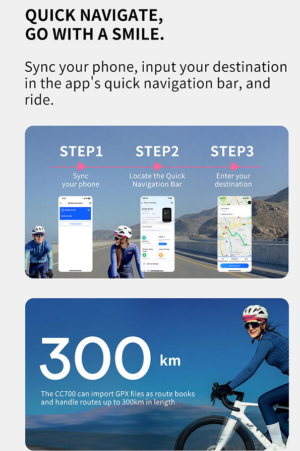 The CC700 can import GPX files as route books and handle routes up to 300km in length.