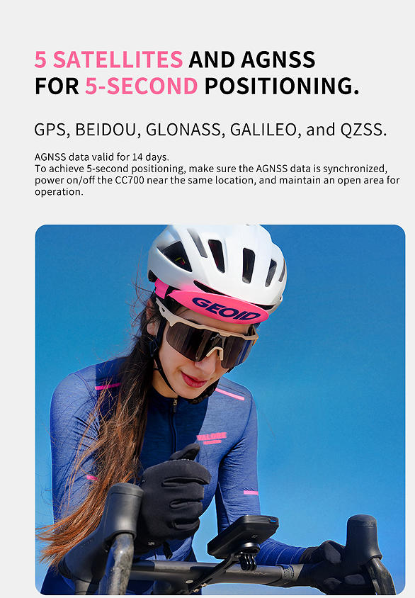 (To achieve 5-second positioning, make sure the AGNSS data is synchronized, power on/off the CC700 near the same location, and maintain an open area for operation.)