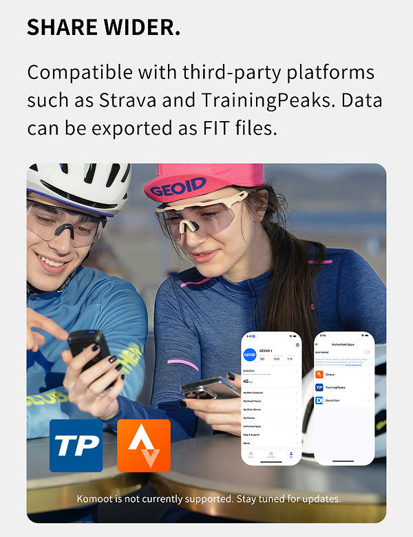 Compatible with third-party platforms such as Strava and TrainingPeaks.