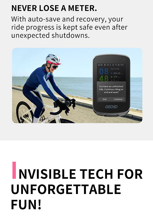 With auto-save and recovery, your ride progress is kept safe even after unexpected shutdowns.