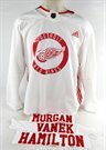 Game Used White Practice Jersey Trevor Hamilton Thomas Vanek Cody Morgan Name Plate
