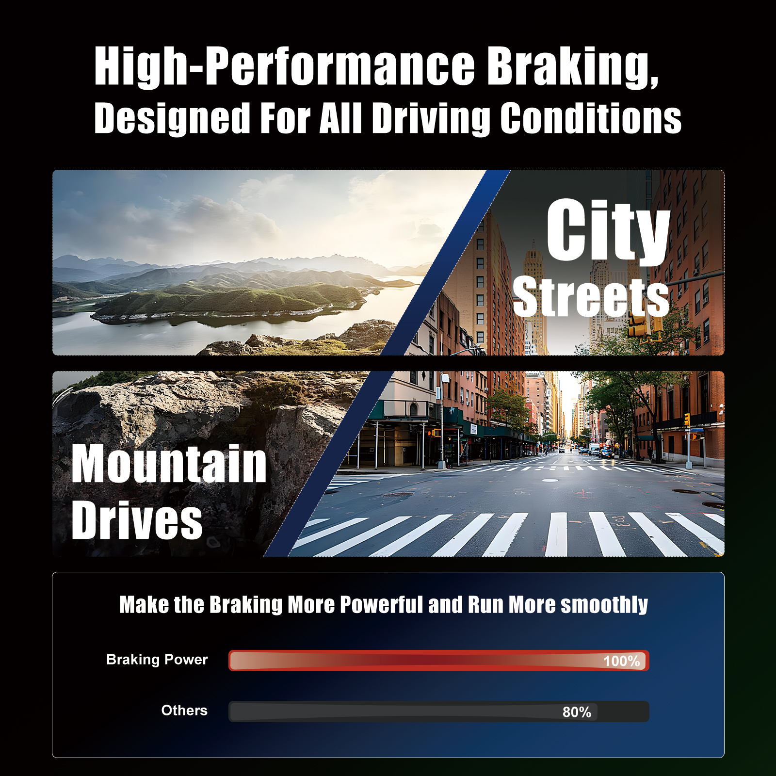 Comprehensive Road Condition Adaptability: Delivers stable braking performance from daily commutes to high-performance vehicles