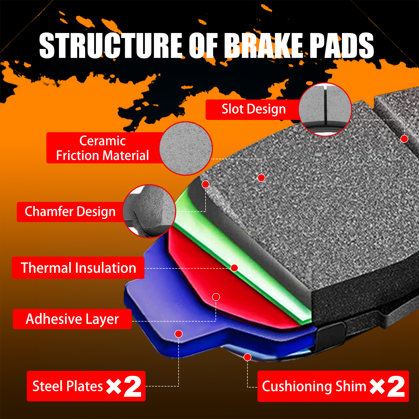 ✅Package Include :4*Rear Ceramic Brake Pads