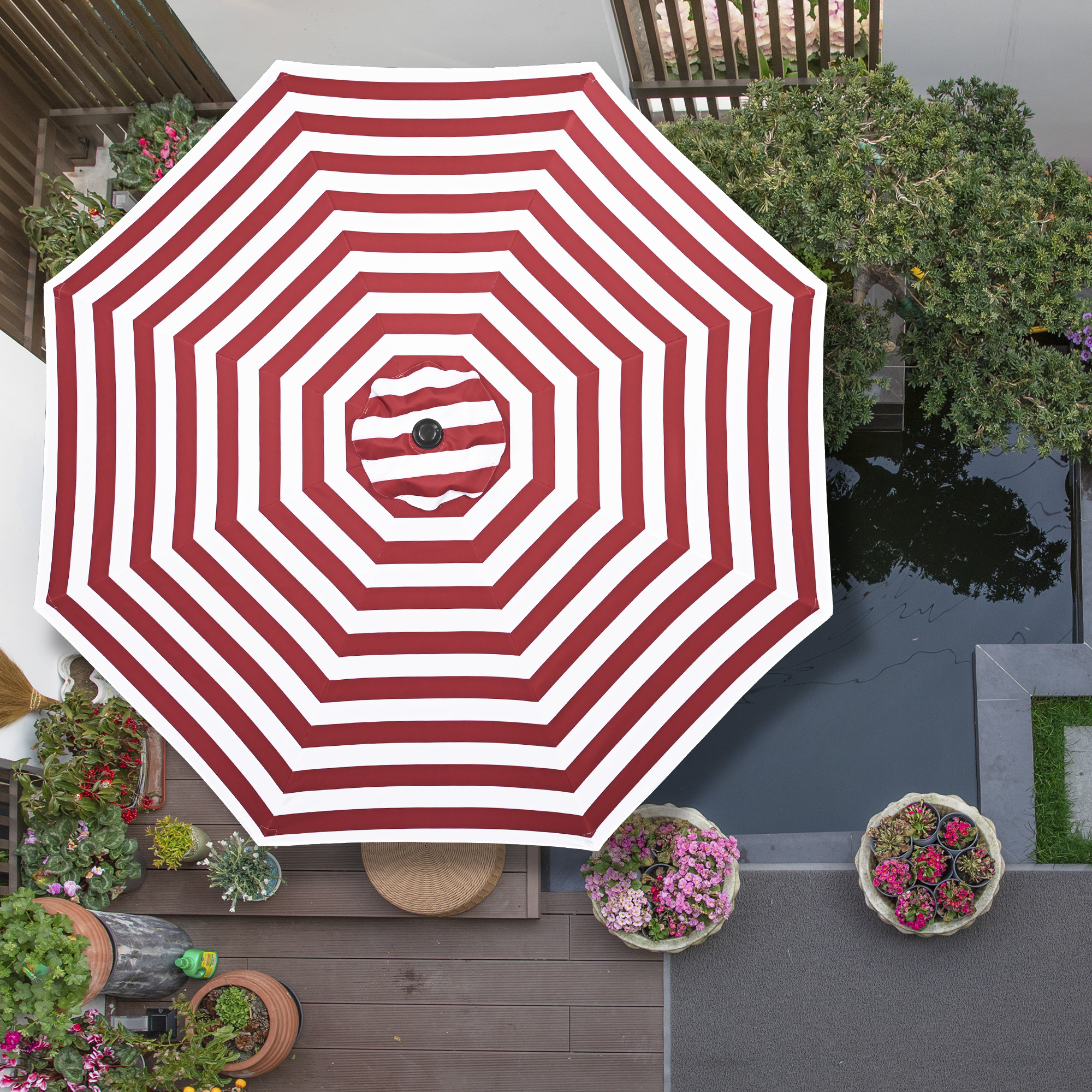 - Universal Cover Replacement - 8 ft Universal Replacement Umbrella Canopy fits 8 ft umbrella with 8 ribs measuring 46 7/16" in length, boasting vibrant red and white stripe pattern for freshening up your umbrella while infusing your outdoor space with a relaxed resort vibe