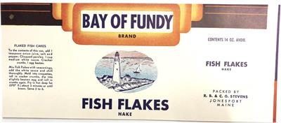 For sale is a very nice original vintage 1950's, unused, colorful, tin can label for Bay of Fundy Brand Fish Flakes, Packed by R. B. & C. G. Stevens in Jonesport, Maine. The size is 9 3/4" x 4 1/16", the colors are bright, it has a great litho of a light house, and the ocean on one side with a sail boat. It is a great looking colorful label that would look magnificent framed & on the wall in your kitchen or den, or put it on a can for display. If you have any questions, let me know.Thanks for looking, please see the other vintage labels, old invoices and checks, stocks, documents, ephemera,and miscellaneous vintage paper and old store and warehouse stock listed in my Ebay store, items may be combined to save on shipping charges, just use the cart. Item sent Ground Advantyage postage in USA with Delivery Confirmation and sandwiched between 2 pieces of cardboard for protection, other countries please check with me for rates.