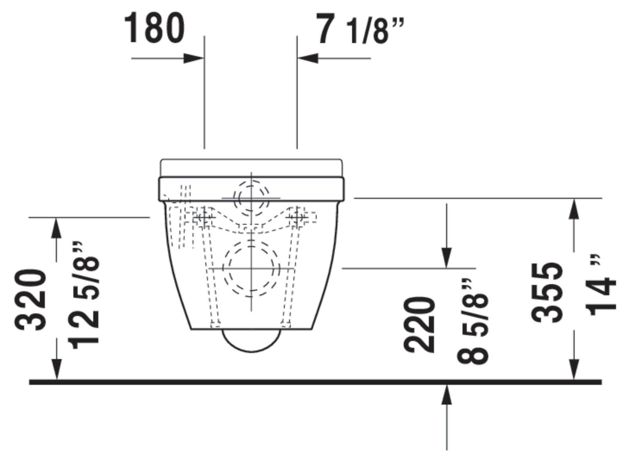 - Overall Height: 14-3/4" (from bottom of the base to the highest point of the toilet)