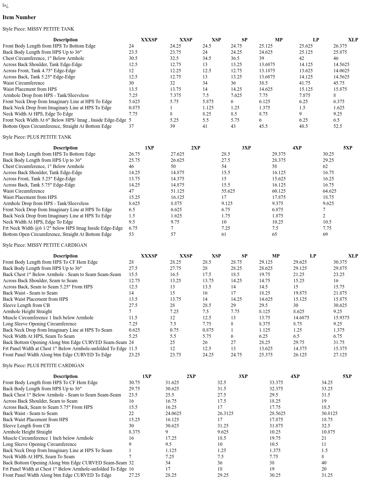 - Tank Length: petite missy length 24-1/2" to 26-3/8"; petite plus length 26-3/4" to 30-1/4"