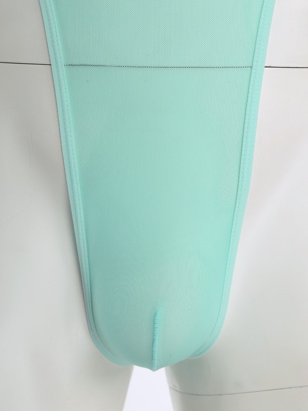 The high-cut design and bulge pouch are well-thought-out details, enhancing the overall aesthetic and functionality of the bodysuit.