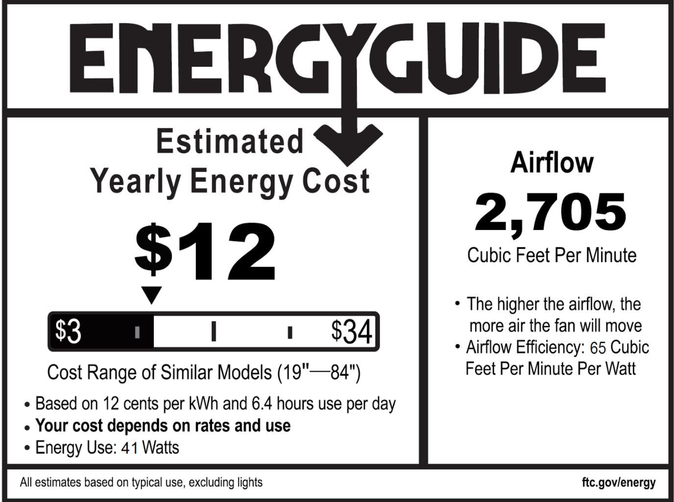 - CFM Per Watt (Low): 60.6
