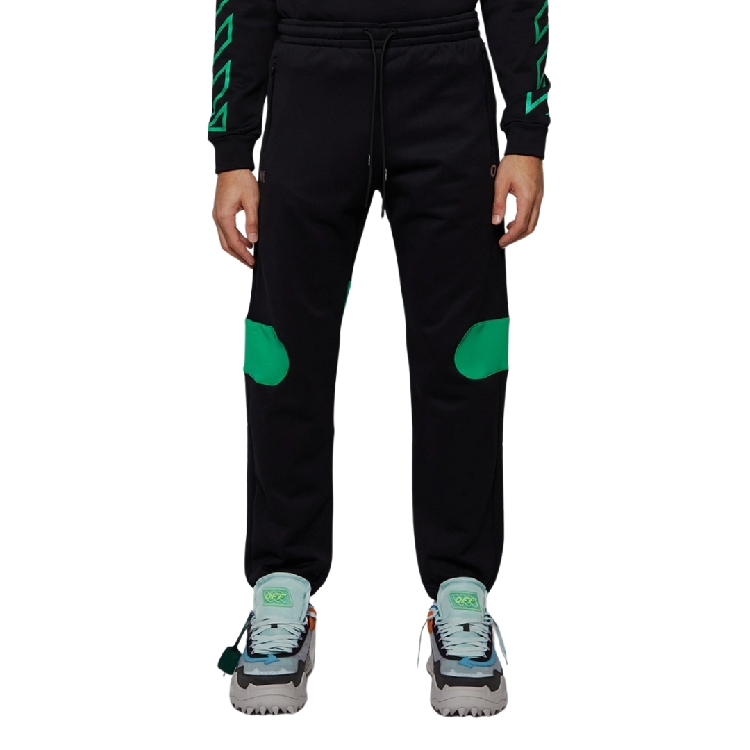 Off-White Green Diag Outline Design Cuffed Black Sweatpants