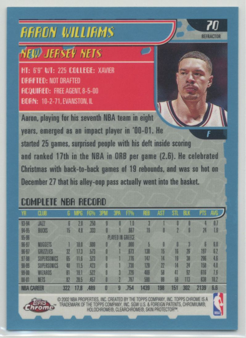 | Aaron Williams 2001-02 Topps Chrome Refractor #70 New Jersey Nets |