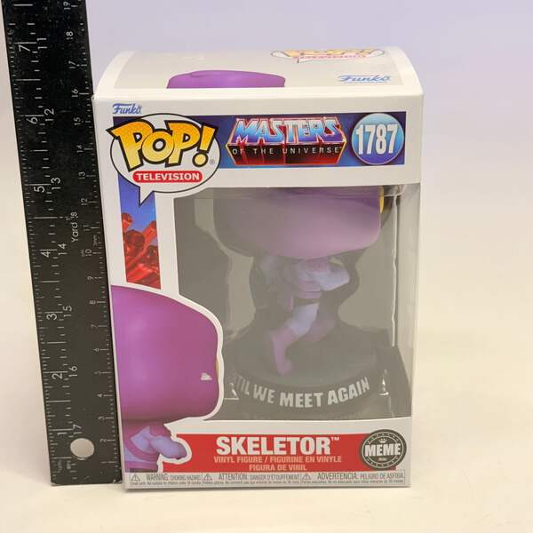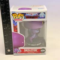 FUNKO POP Skeletor Vinyl Figures Masters of The Universe Condition: New Size: Ages 3+ MPN/Model: 1787 Description: POP! Skeletor™ is here to drop some bizarre facts and run! Commemorate a pop culture sensation and expand your Masters of the Universe™ lineup when you make this exclusive “Until We Meet Again” POP! Skeletor™ the next addition to your POP! Memes collection. Vinyl figure is approximately 4.5 in (11.4 cm) tall. This exclusive collectible features our new authentication packaging. Using micro-optic technology that cannot be duplicated or replicated, these stickers contain unique item codes that can be officially verified through Octane5.