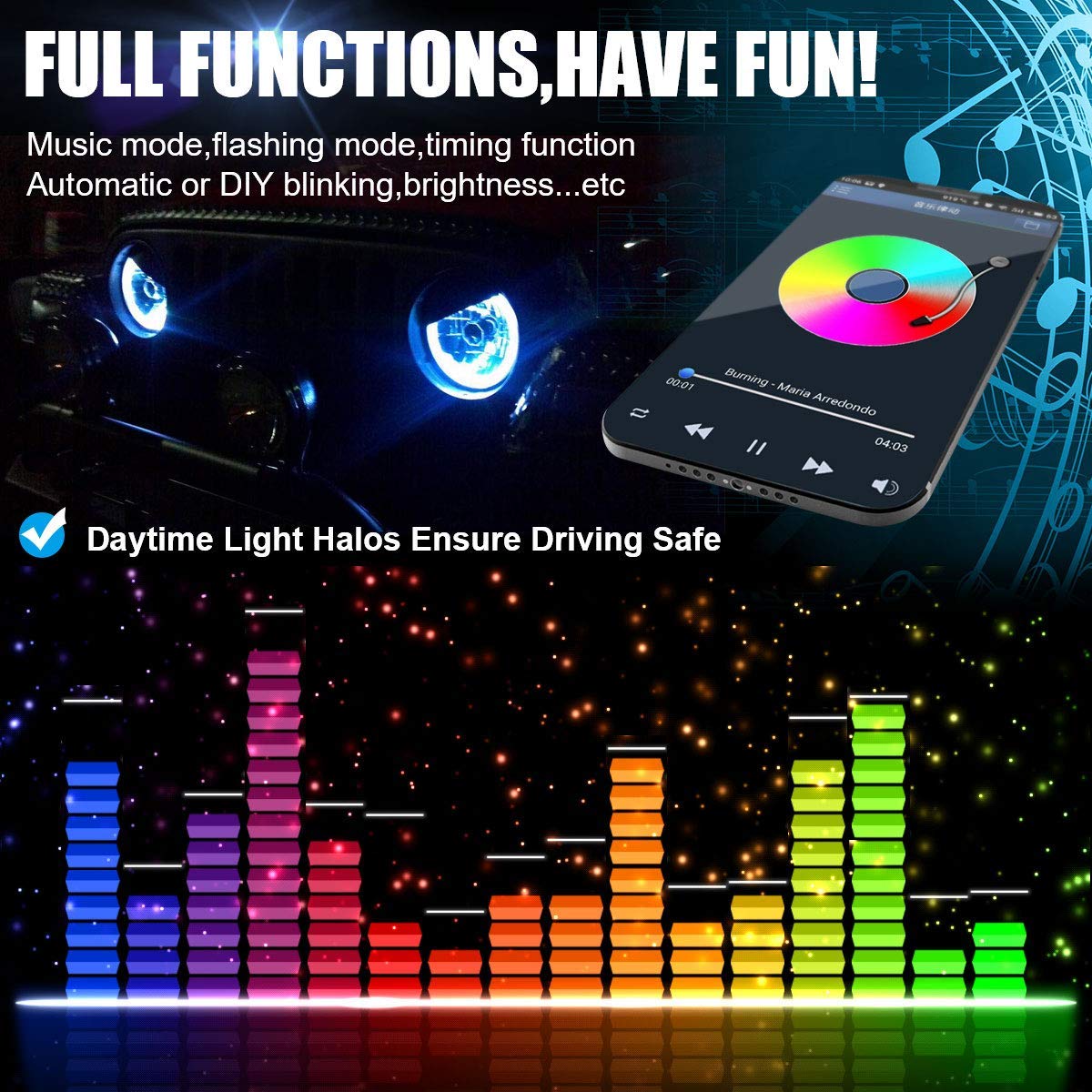 ⭐[Transform Your Jeep Wrangler!]-Upgrade your ride with ICBEAMER's RGB Multifunction Halo Angle Eye LED Headlights. Control brightness, switch modes, and more – all through the ICBEAMER phone app! 🌀✨