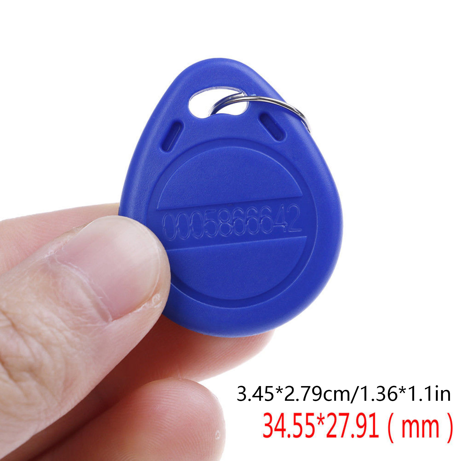 Specifications: 100% brand new and high quality Color: Blue Material: ABS & Metal Operation Frequency: 125Khz Detecting Distance: 3-5cm Storage Capacity: 64 bits Size:34.55*27.91*5.45mm Suitable: for enterprise card, campus card, bus stored value card, express way fees, parking, district management, attendance systems, patrol system, enterprise systems, access control systems, radio frequency identification field and so on. Each token pre-programmed with unique ID which is printed on it. Each comes with Key ring included. Compatible with all RFID reader to gain access. Waterproof, shockproof, anti-corrosion. Can be hung on channeling keychain for easy carrying.