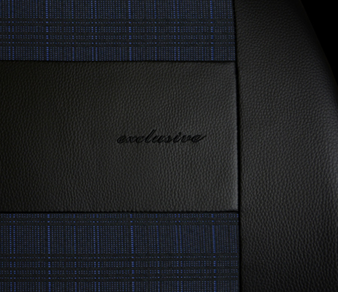 - Les housses de siège EXCLUSIVE sont fabriquées en similicuir de haute qualité (parties latérales avant du dossier et de l’assise) ainsi qu’en tissu de rembourrage résistant dans la partie centrale.
