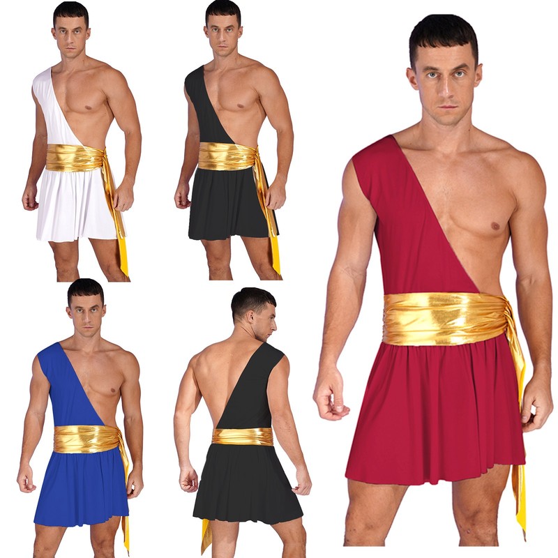 Men's Ancient Greek Cosplay Outfit One Shoulder Ruched Belted Dresses Costume