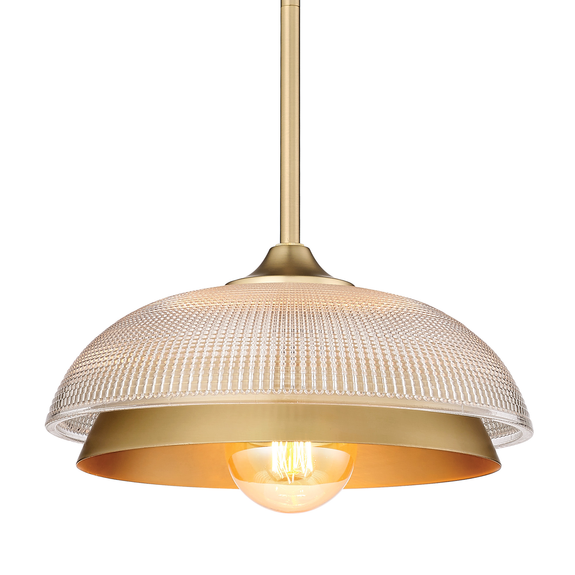 - Includes a retro prism glass outer shade with a steel inner shade