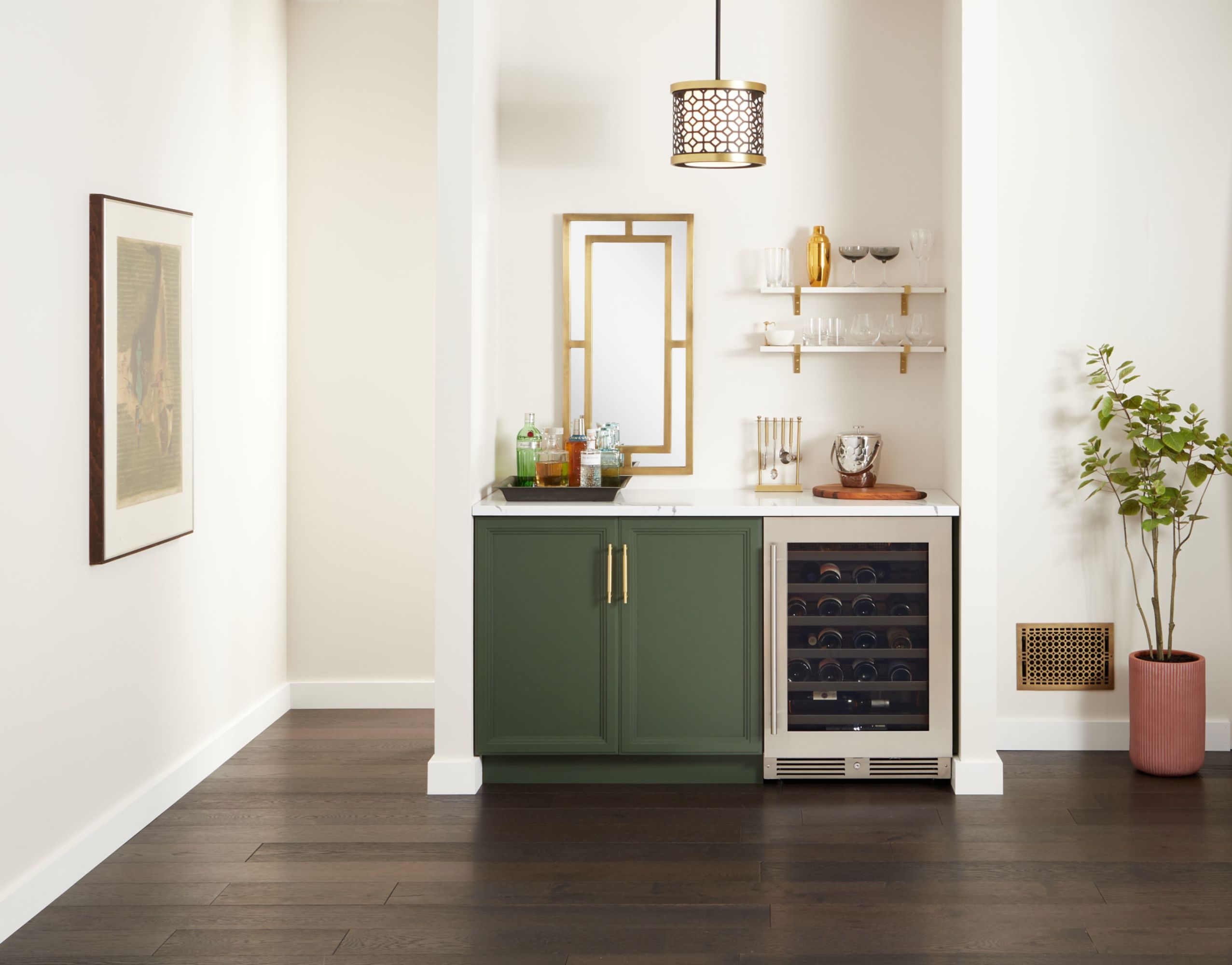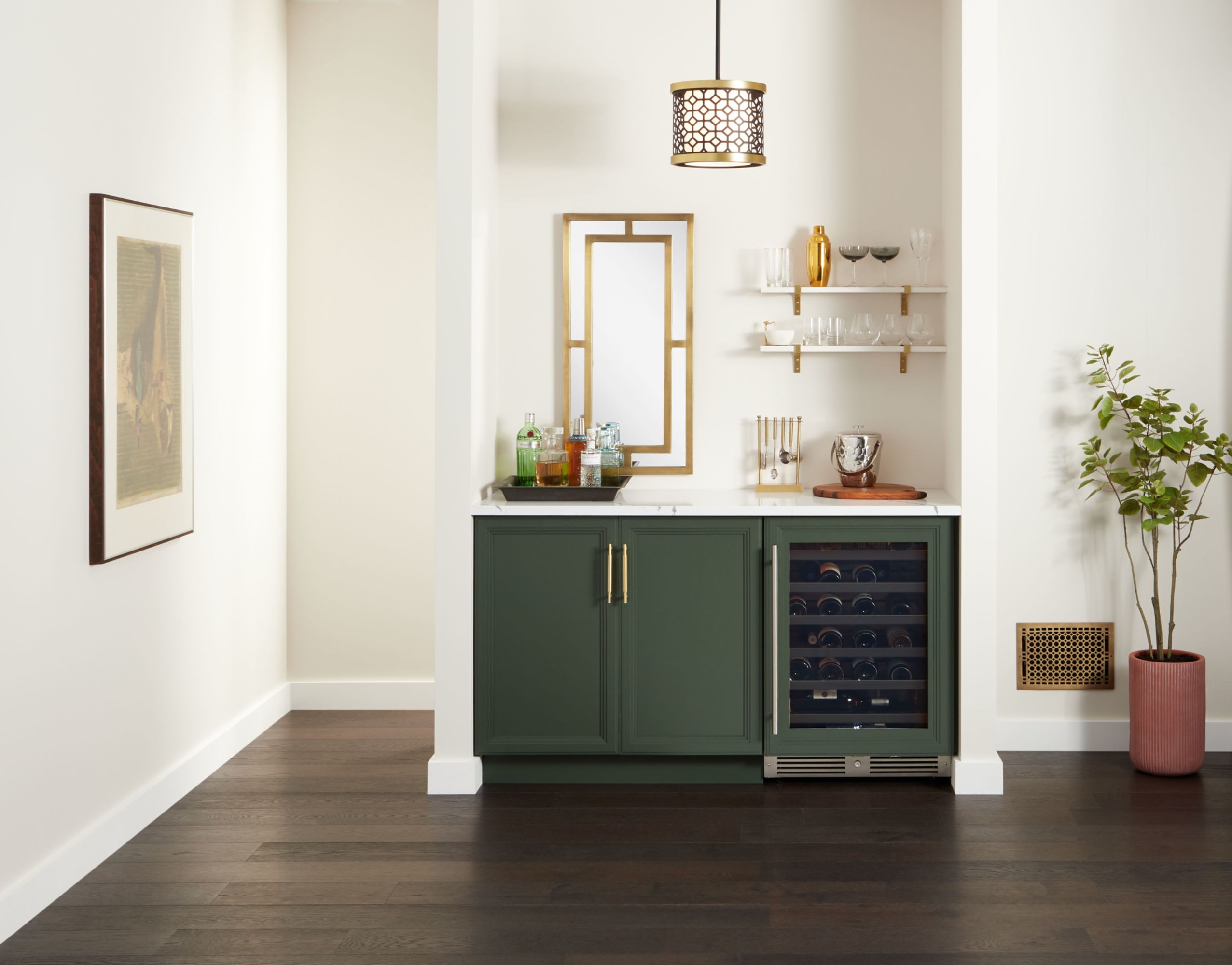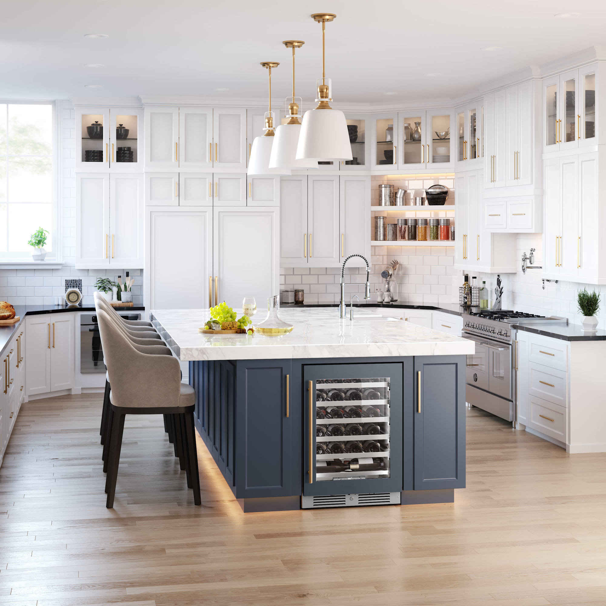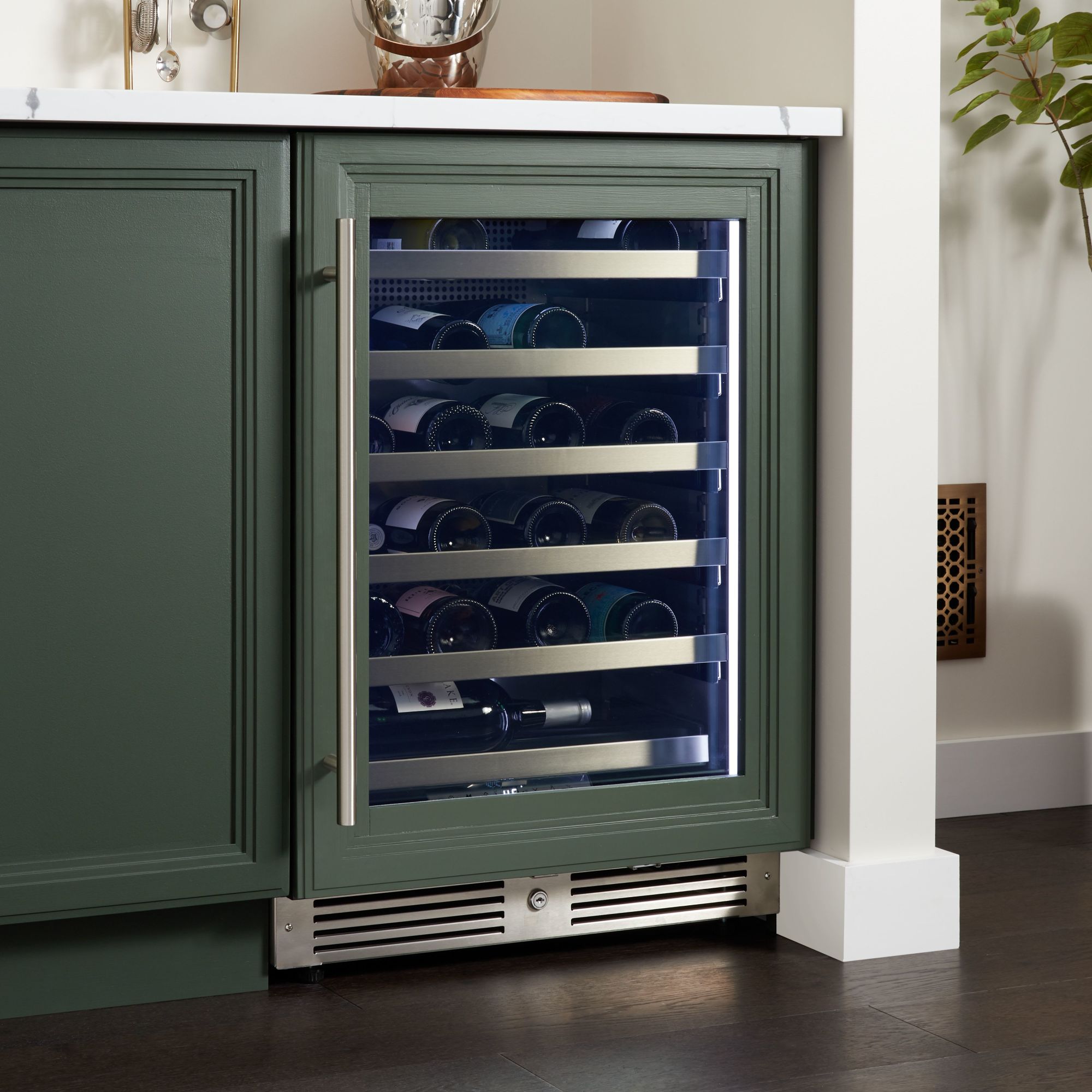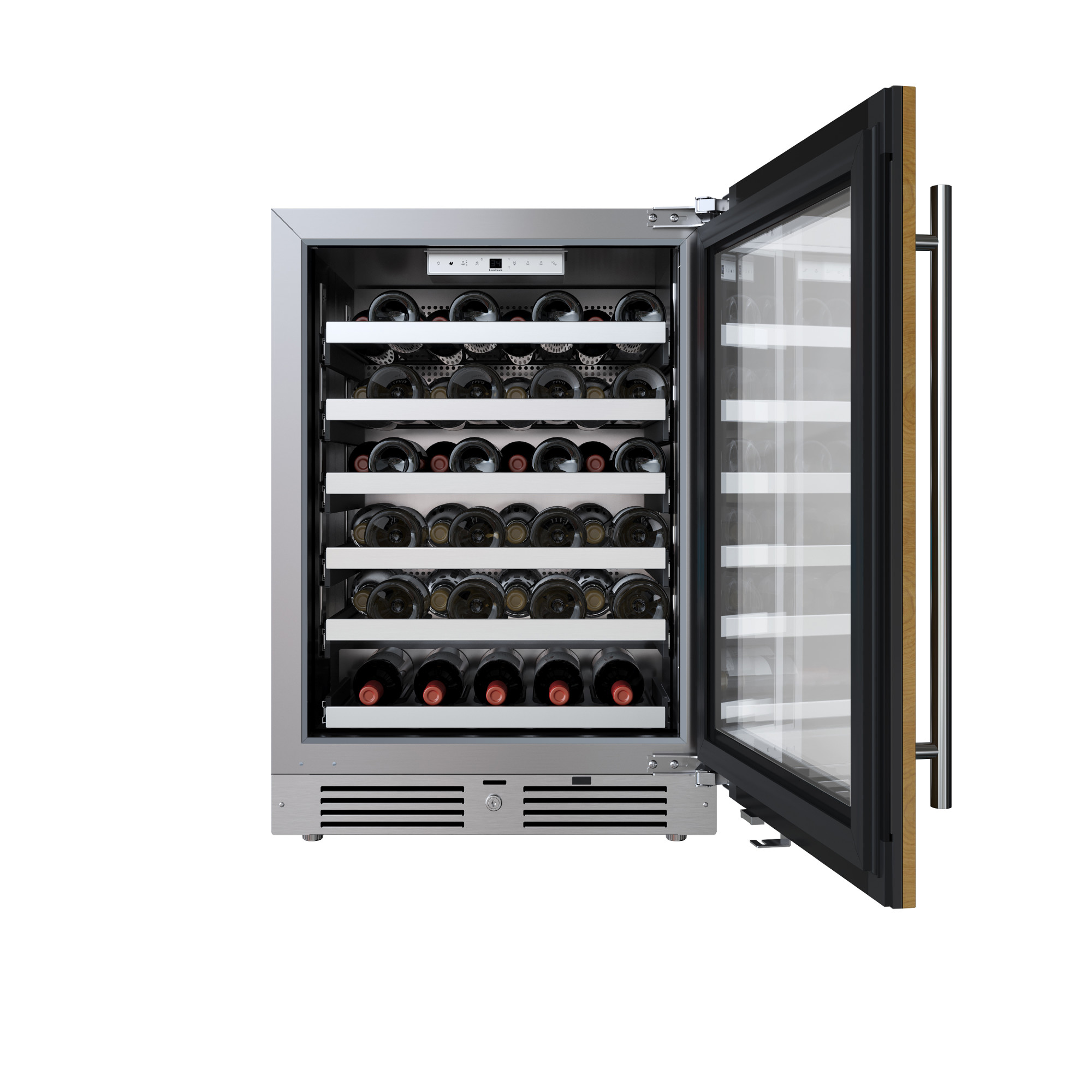 - Includes five (5) full extension wine shelves plus one (1) shallow bottom shelf to fully utilize interior space