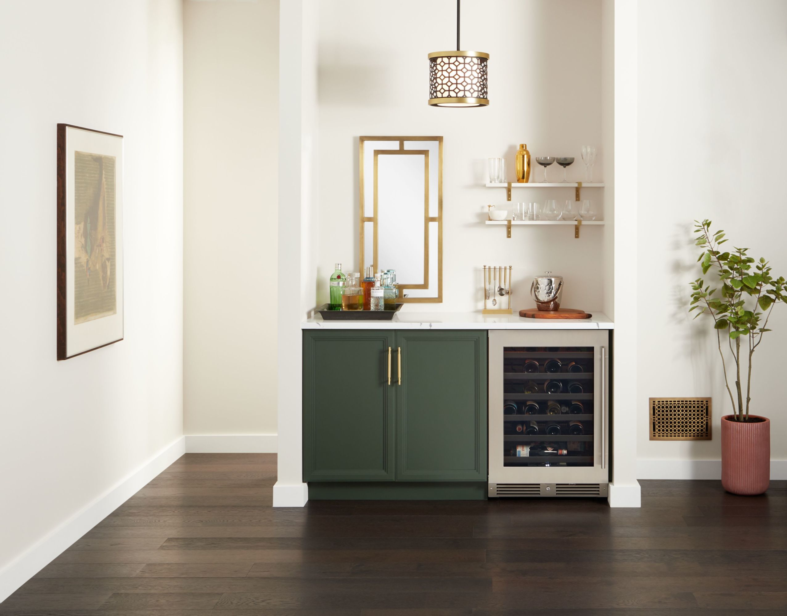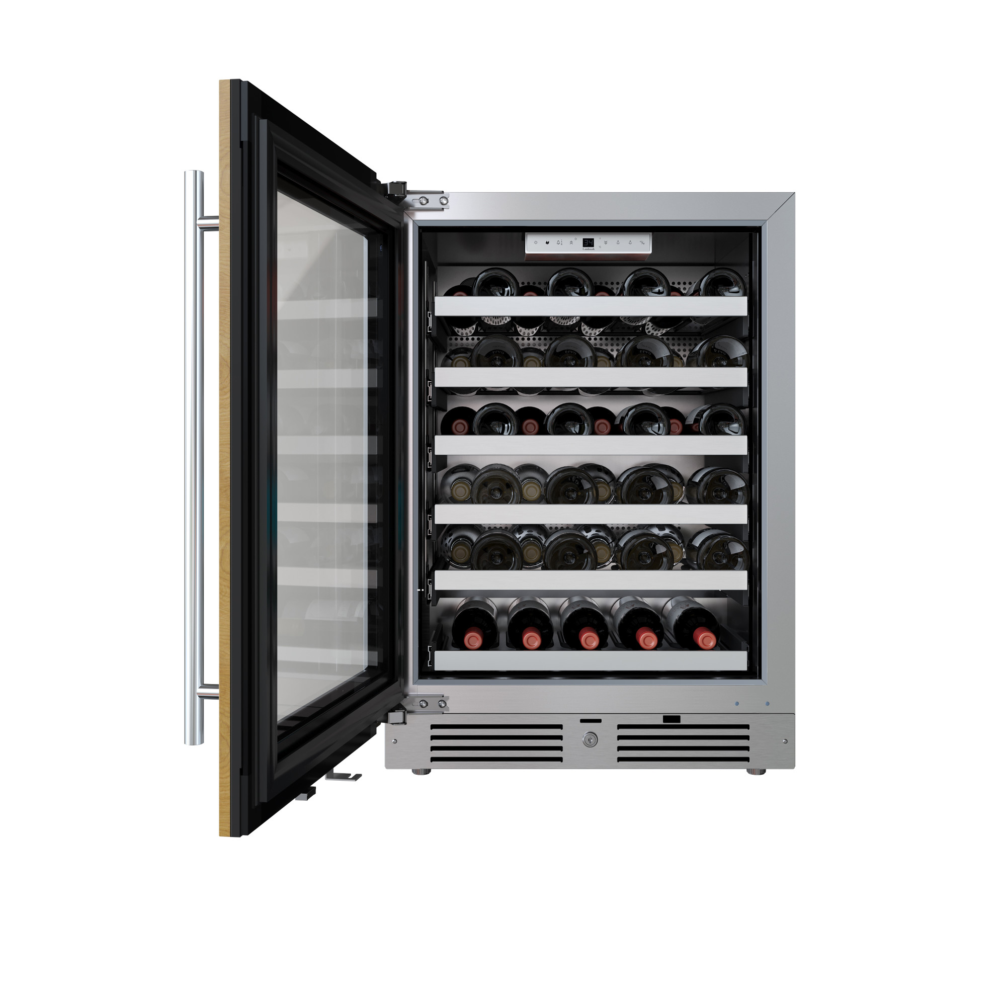 - Includes five (5) full extension wine shelves plus one (1) shallow bottom shelf to fully utilize interior space