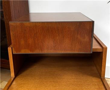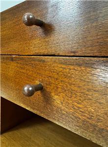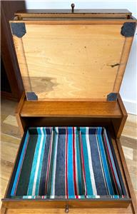 Good vintage condition with minimal surface wear from age and normal use, the drawers function smoothly, and are fabric lined. Please see a dark ring on top of the chest, image 2.