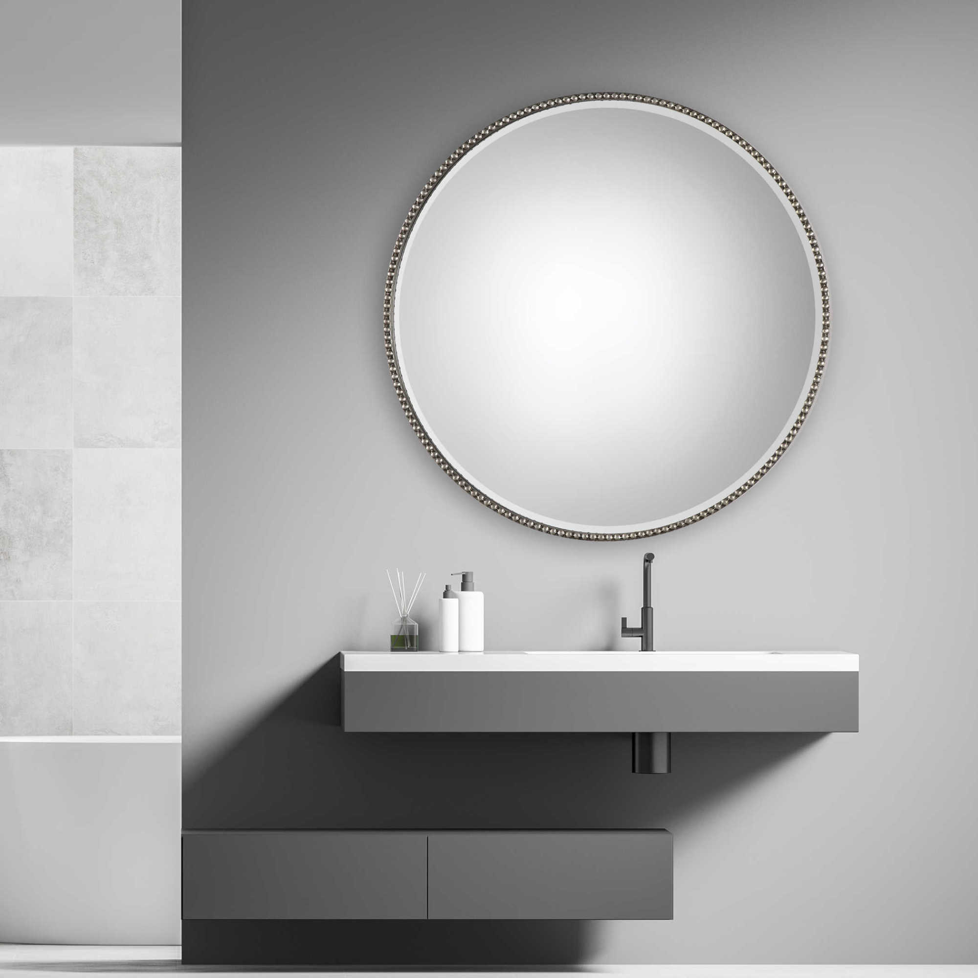 - Circular mirror with a beveled edge