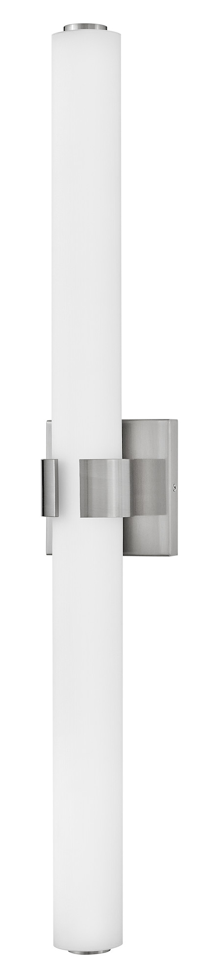 Item DescriptionBold and balanced are the defining elements of Aiden. A striking, signature cuff centers the etched white glass baton, while matching end caps complete the simple symmetry. The clean transitional silhouette can be mounted vertically or horizontally with Invisimount for a look that is as flexible as it is fashionable.