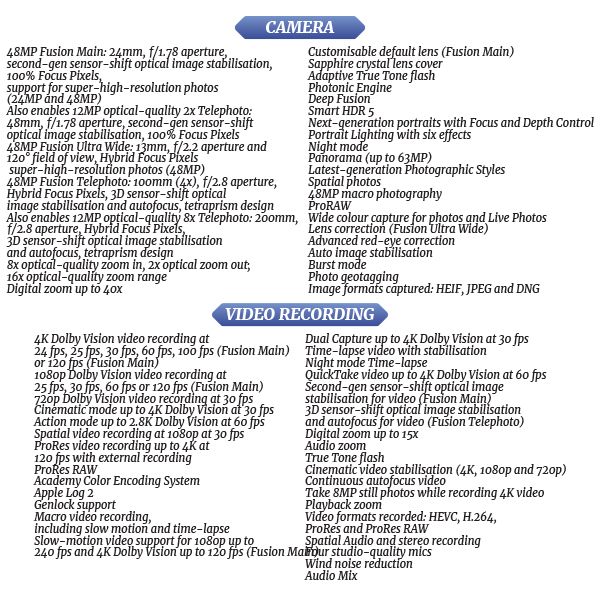 - 6.3-inch Super Retina XDR: A vibrant LTPO OLED display with a 120Hz refresh rate and 3000 nits peak brightness for ultimate clarity.