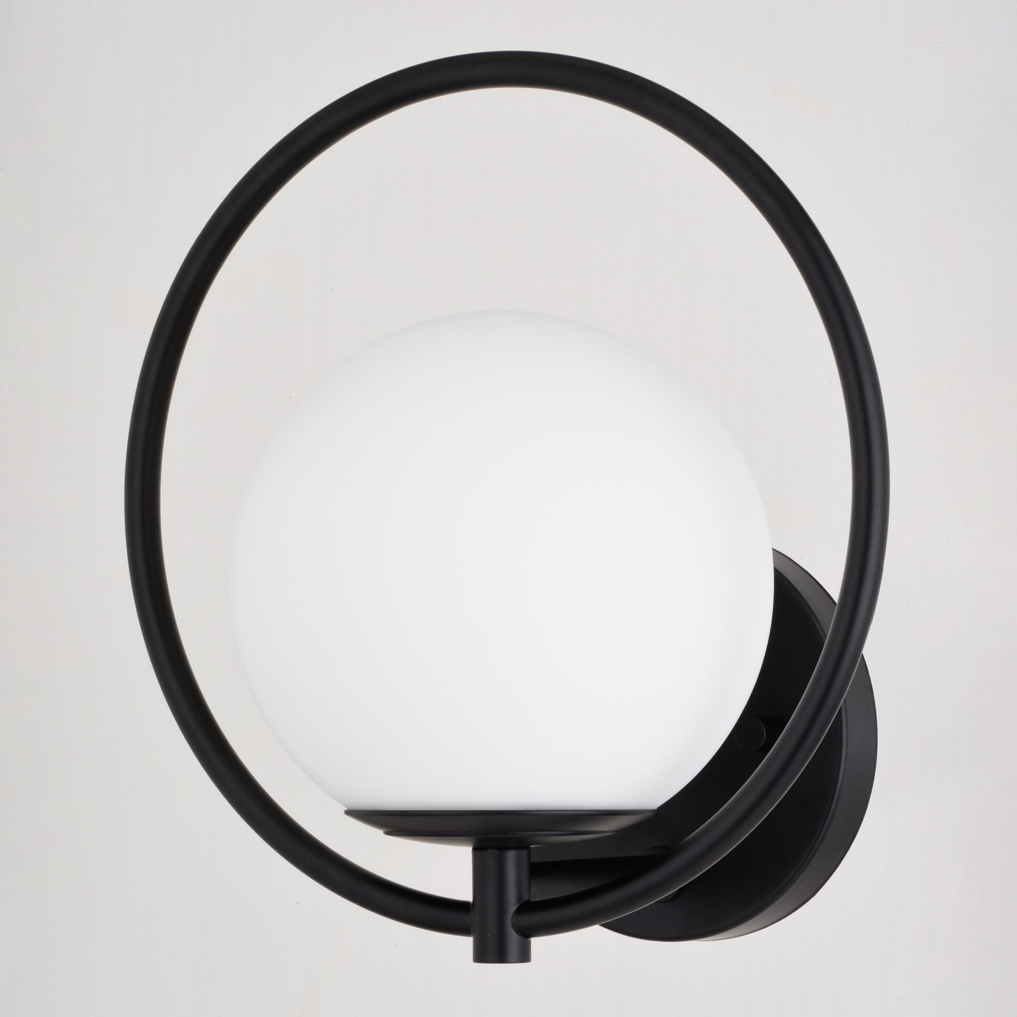 Item DescriptionElevate your walls with the timeless mid-century modern design of the Bucktown wall light. Featuring a contrasting matte black circular frame and white glass globe, this sconce adds a touch of sophistication to bathrooms, bedrooms, or living rooms. Use a pair to flank a bathroom mirror or create a symmetrical look in a hallway and enjoy the warm ambient illumination with a touch of retro-inspired style.
