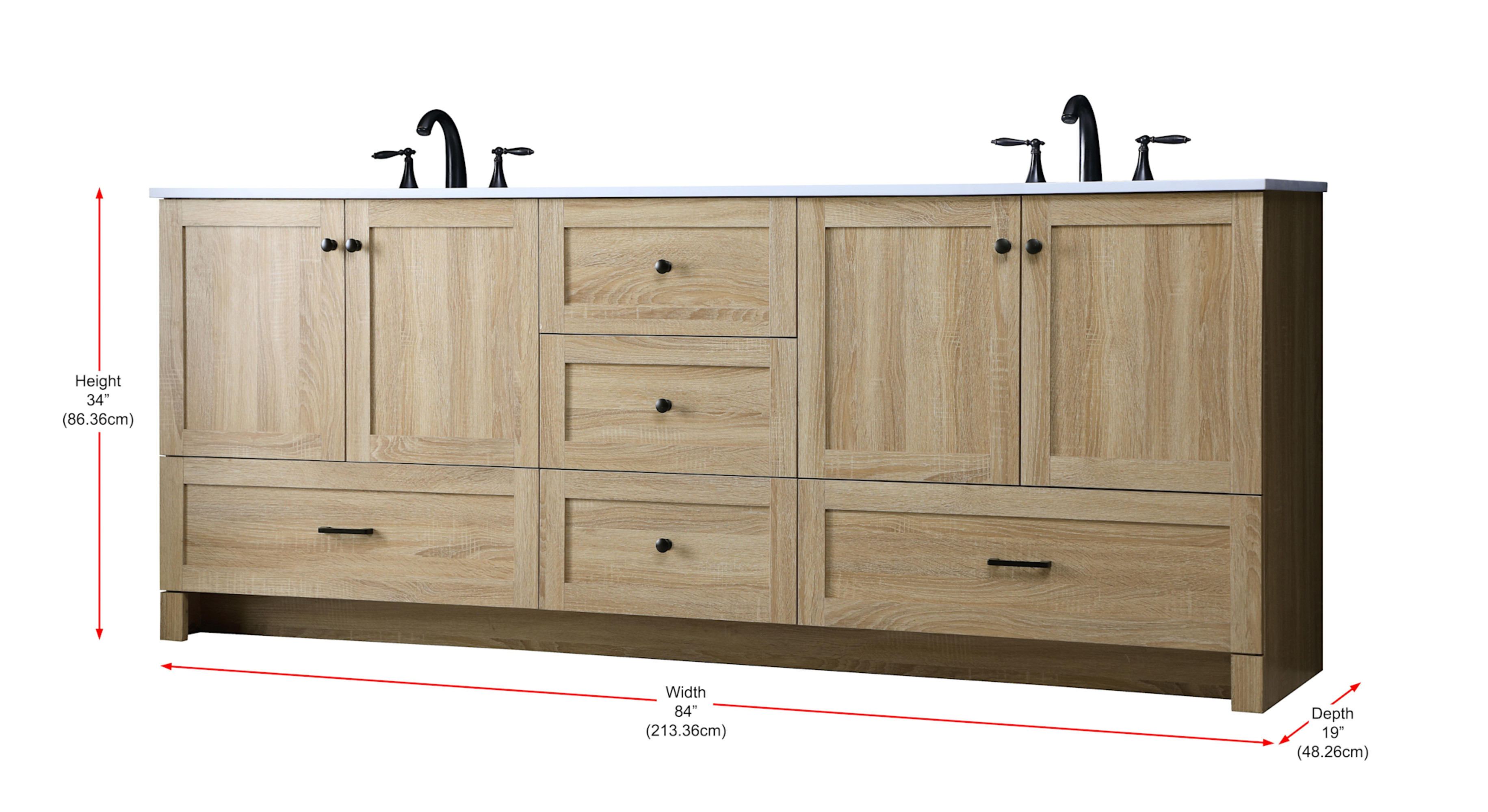 - Vanity Top Width: 84" (left edge to right edge)