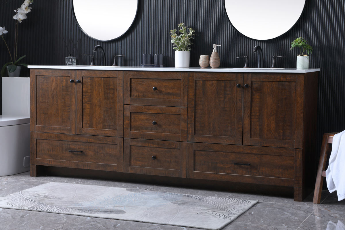 - Revel in the beauty of a vanity that mimics the charm of real wood without the maintenance, boasting a faux wood look that adds a touch of natural warmth and rustic sophistication to your bathroom