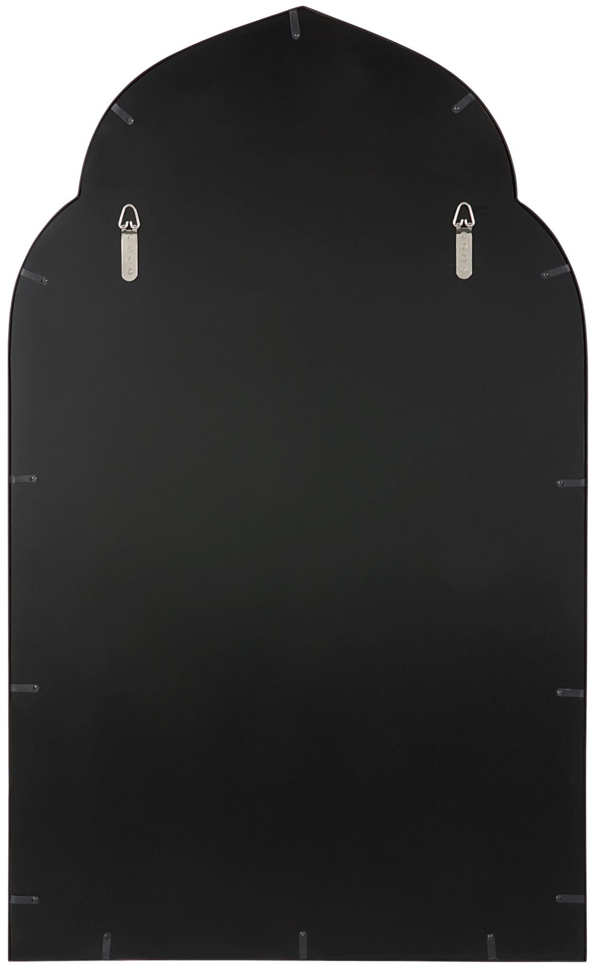 - This mirror's frame is constructed of iron with a black finish
