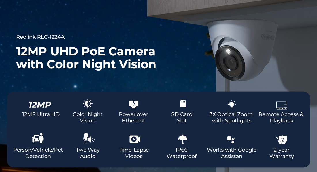 The rugged housing and body make Reolink 12MP outdoor security camera waterproof. It works perfectly both inside and outside your house, in any harsh weather conditions.