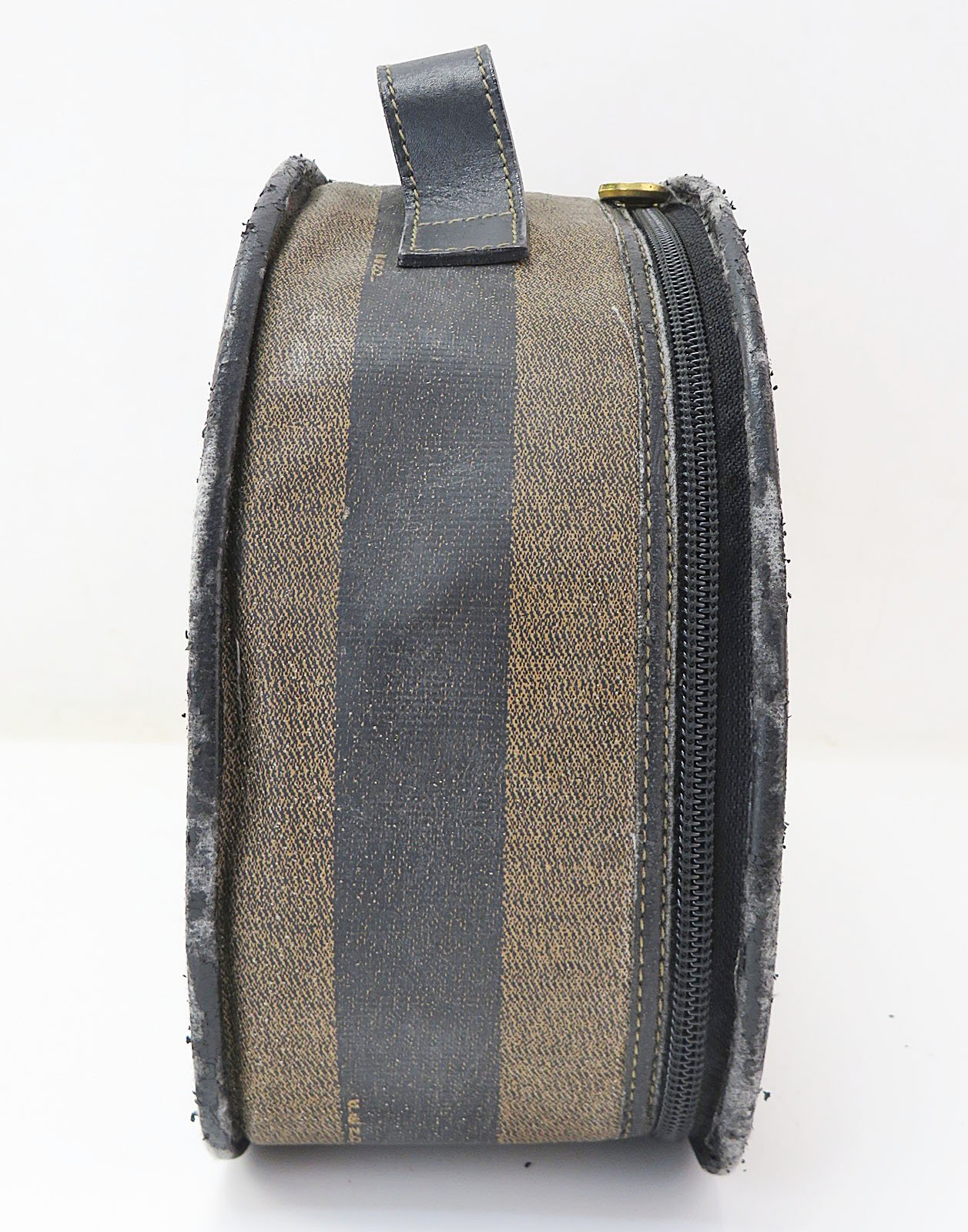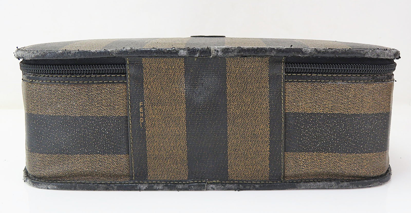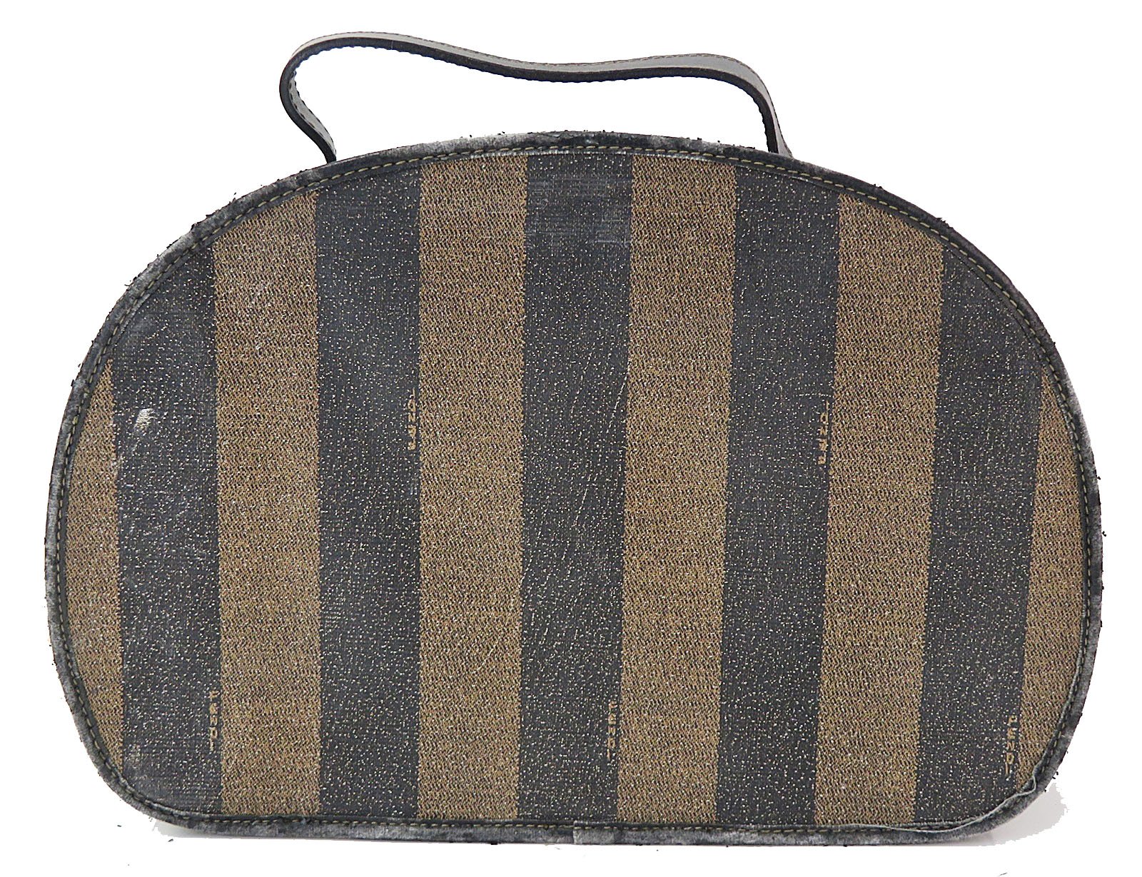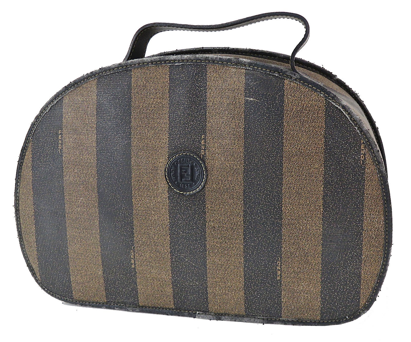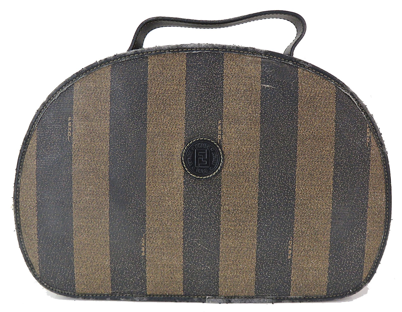 Authentic FENDI Brown & Black Striped PVC Canvas and Leather Hand Bag Purse
