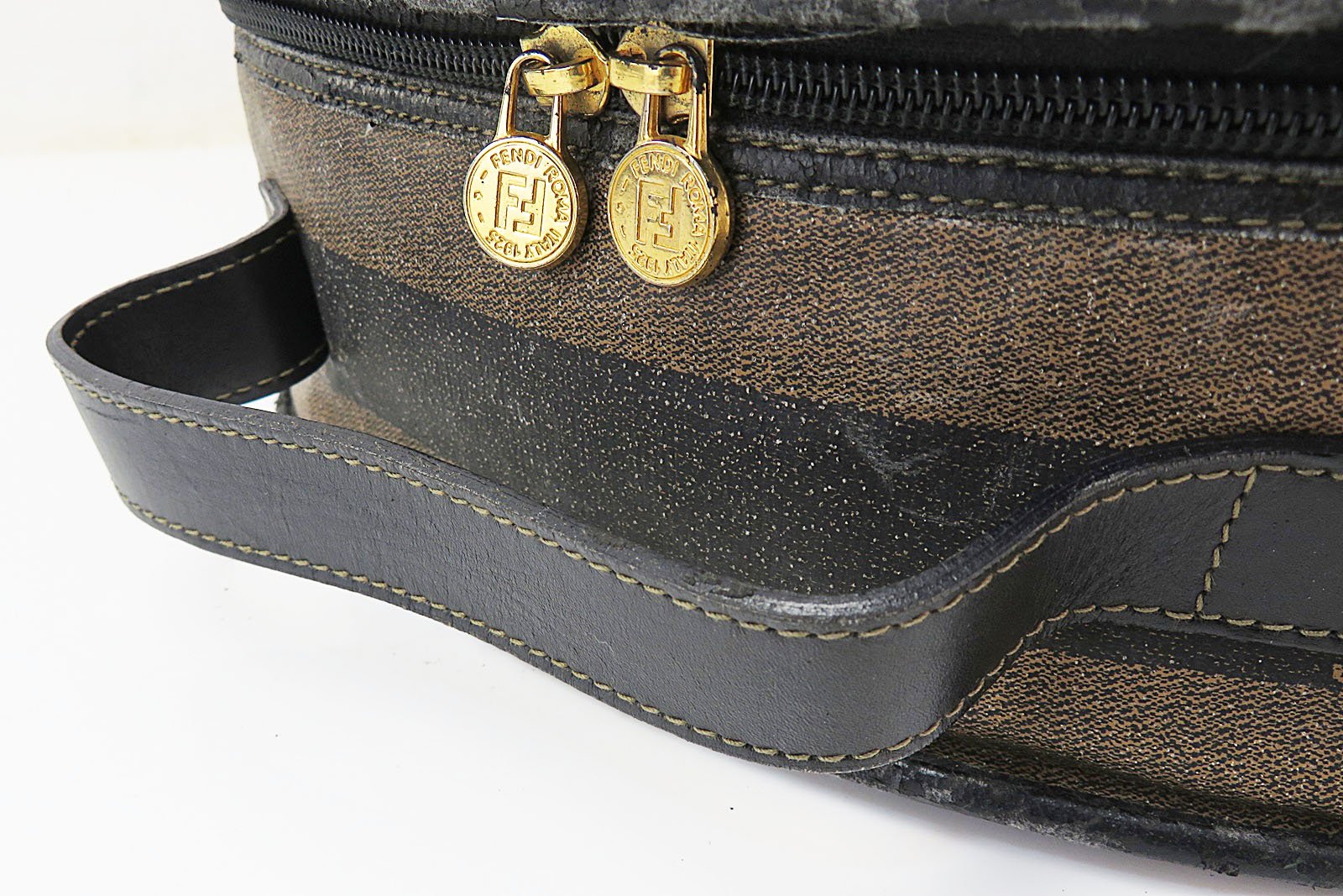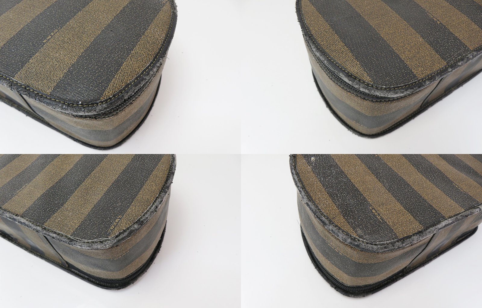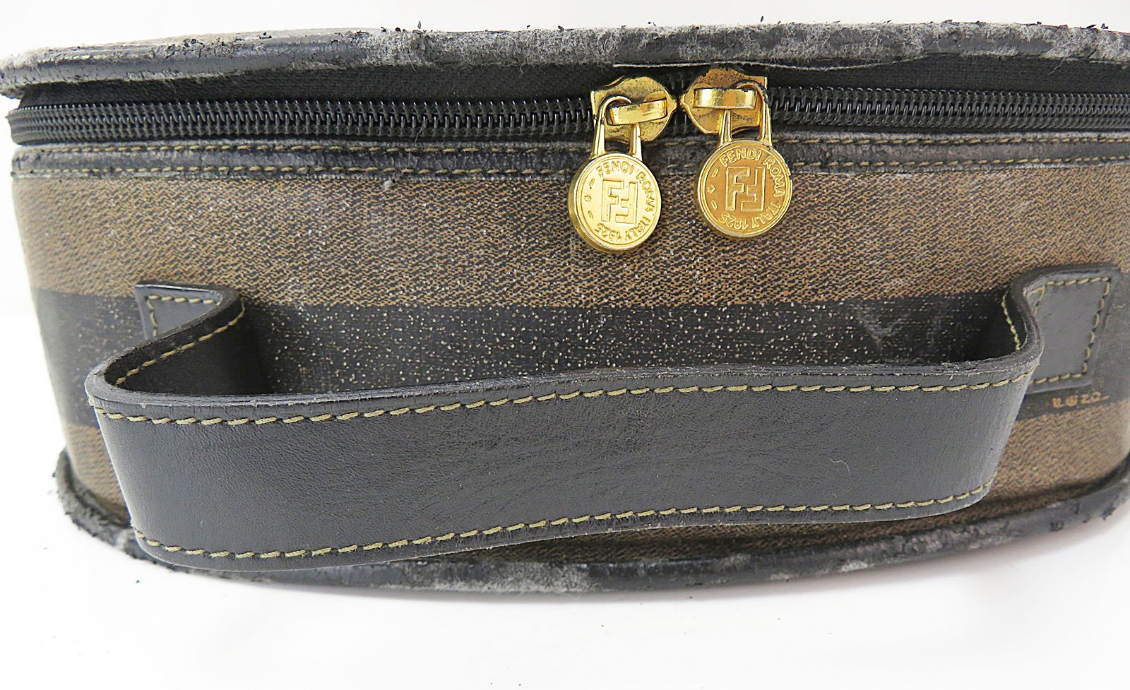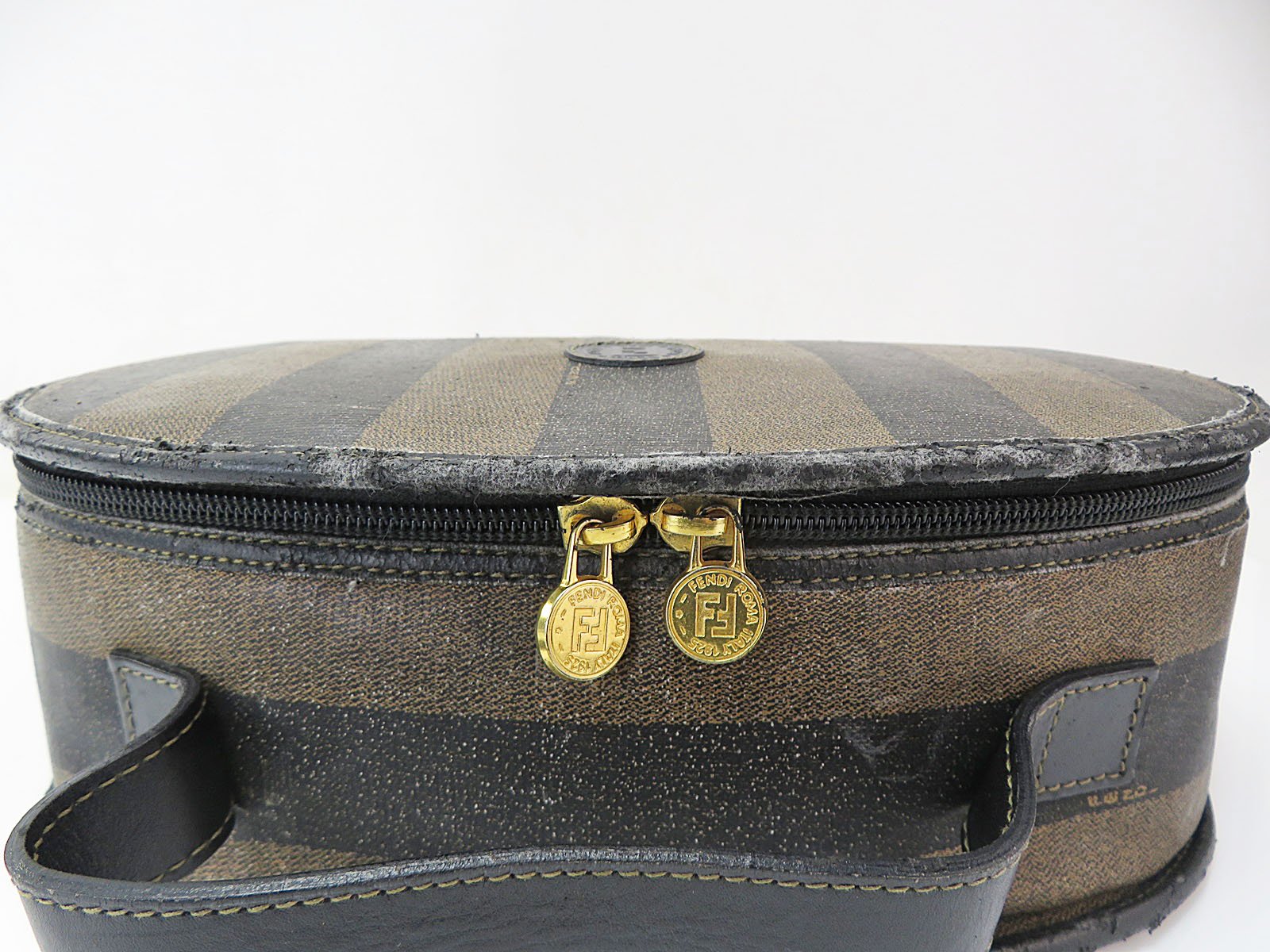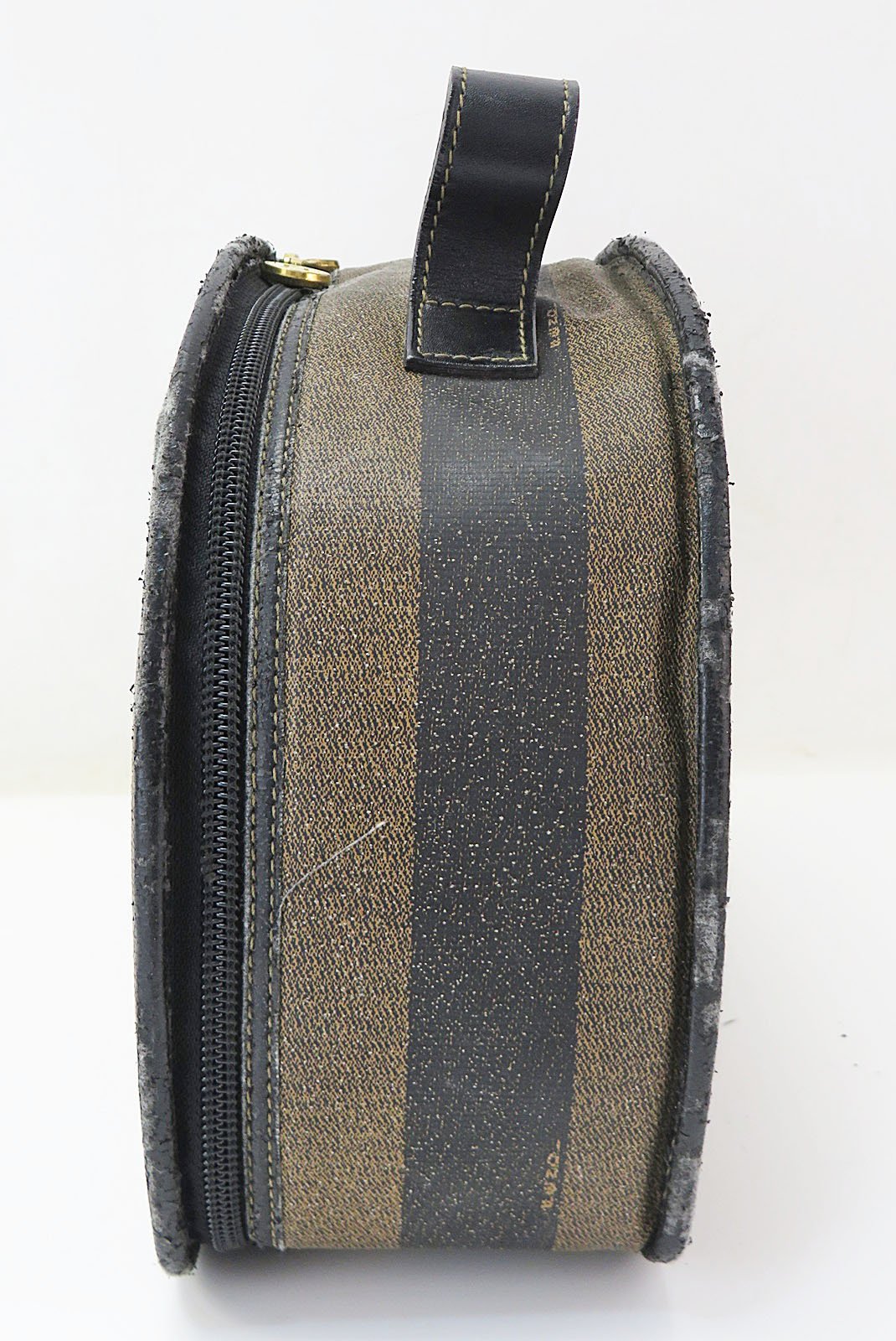 Authentic FENDI Brown & Black Striped PVC Canvas and Leather Hand Bag Purse
