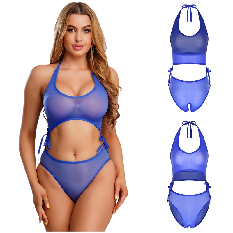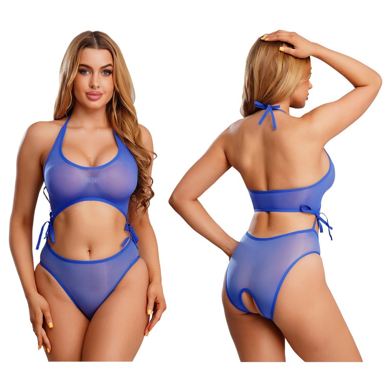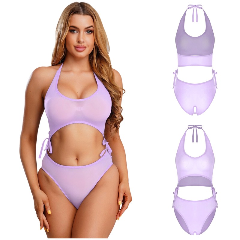 Neckholder mit Bindeband hinten, ärmelloser und schlüssellocher Rückenöffnung, hoch geschnittenen Beinen, ideal, um Ihre Körperkurven zur Geltung zu bringen.