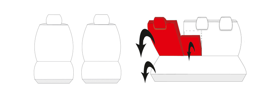 Das Maß zum Nähen der Practic-Bezüge wurde vom Nissan Qashqai II FL (Schalensitze, einteilige Ausführung) 2017- übernommen, was die perfekte Anpassung an die Formen der Originalpolsterung garantiert.