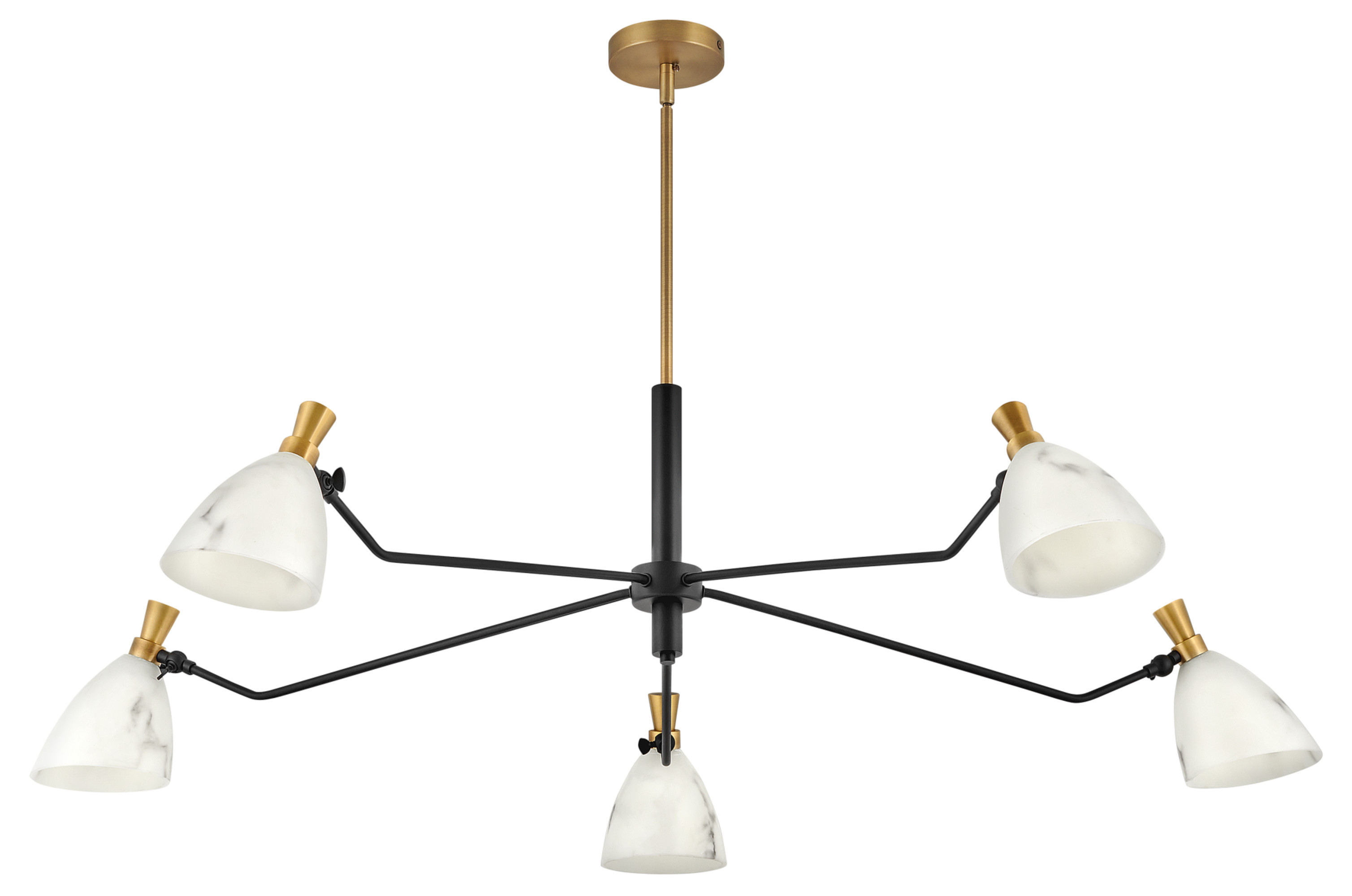 Item DescriptionInfluenced by a mid-century modern aesthetic, Sinclair's striking profile is accentuated by stunning details. A classic finish combination of Heritage Brass and Black is paired with luminous; luxurious faux alabaster shades. Sinclair's sophisticated design offers articulating shades to create a custom look. All designs for Sinclair must be lamped with LED bulbs only (not included).