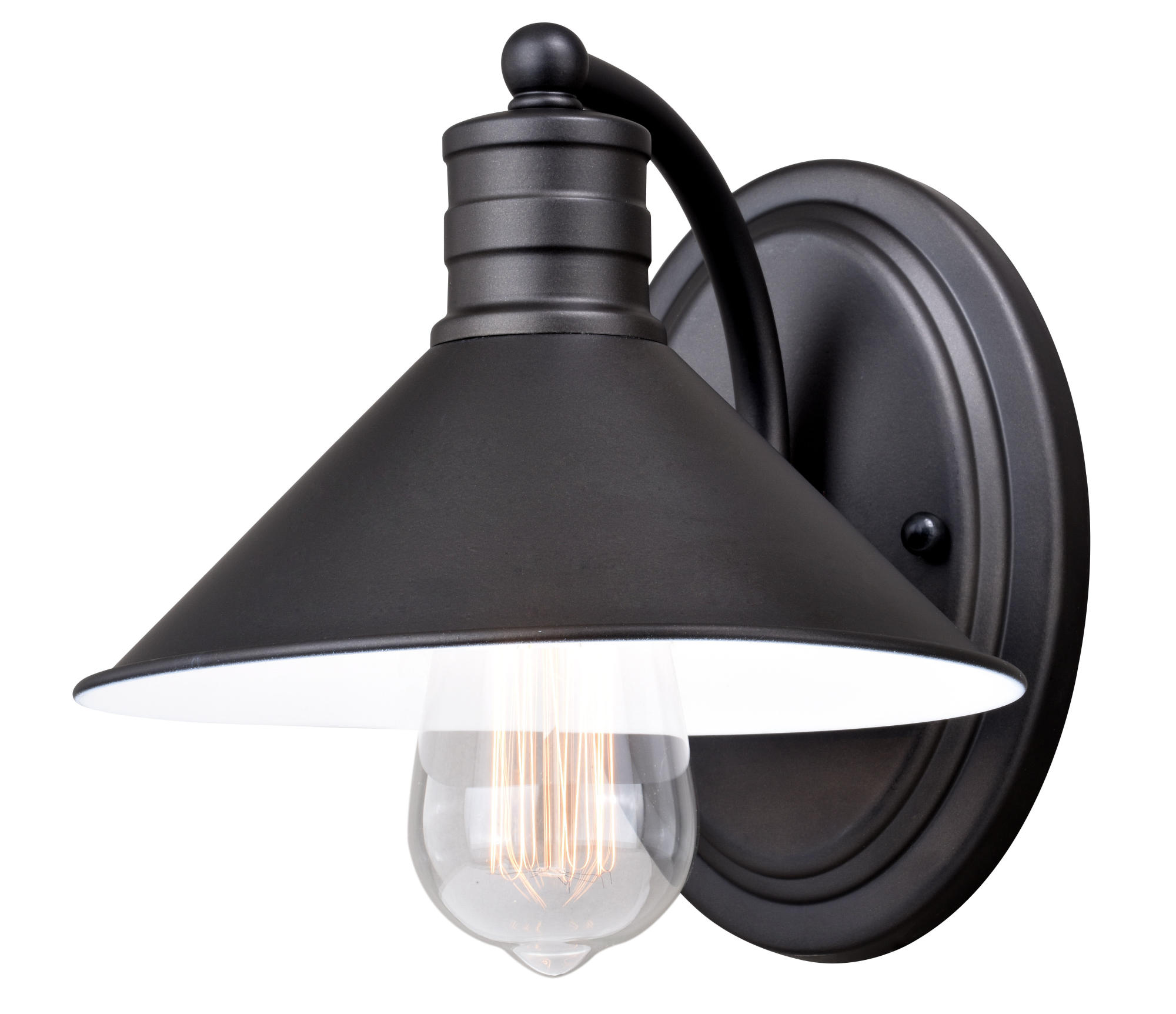 - Sleek metal goose-neck shades feature matte white interiors for optimal light output