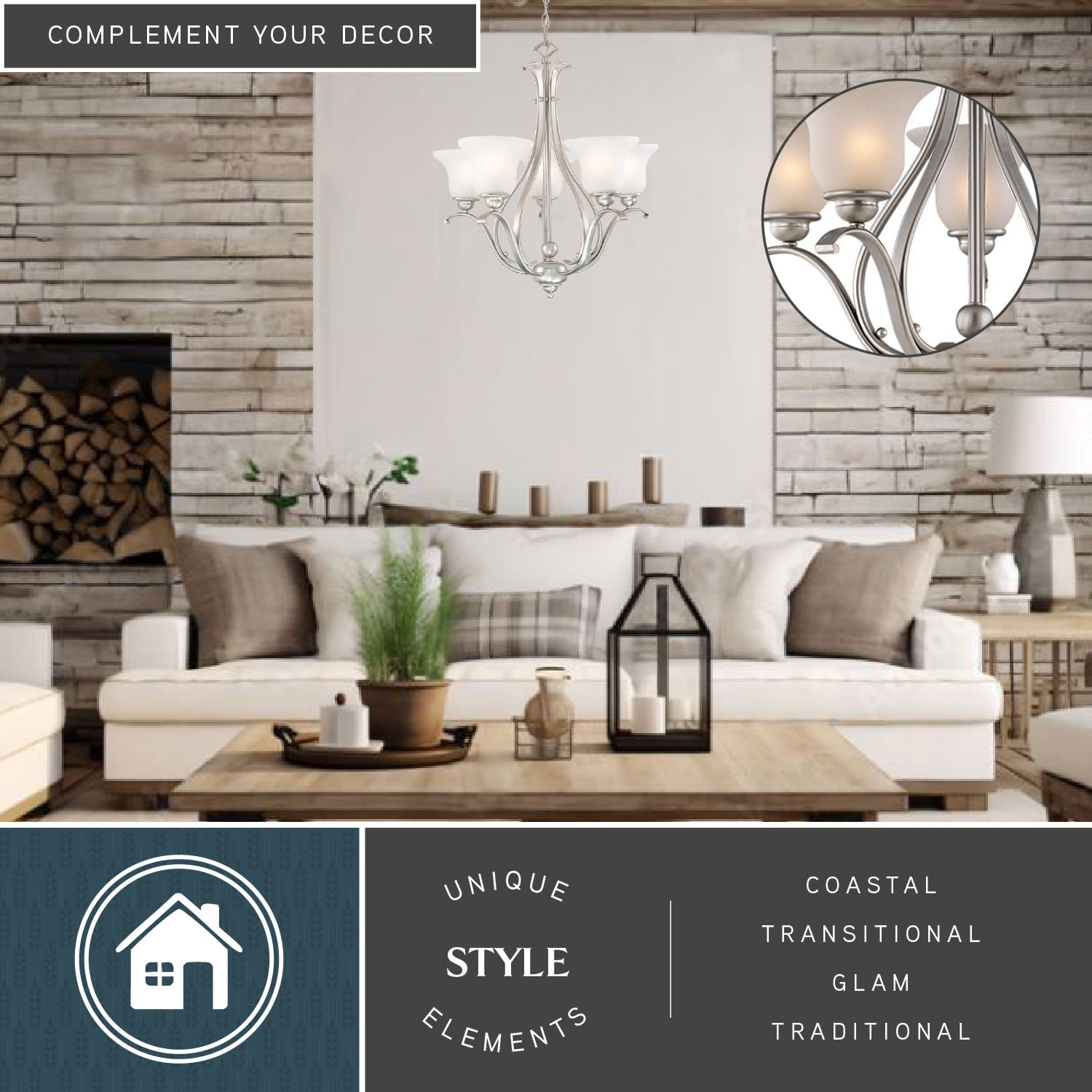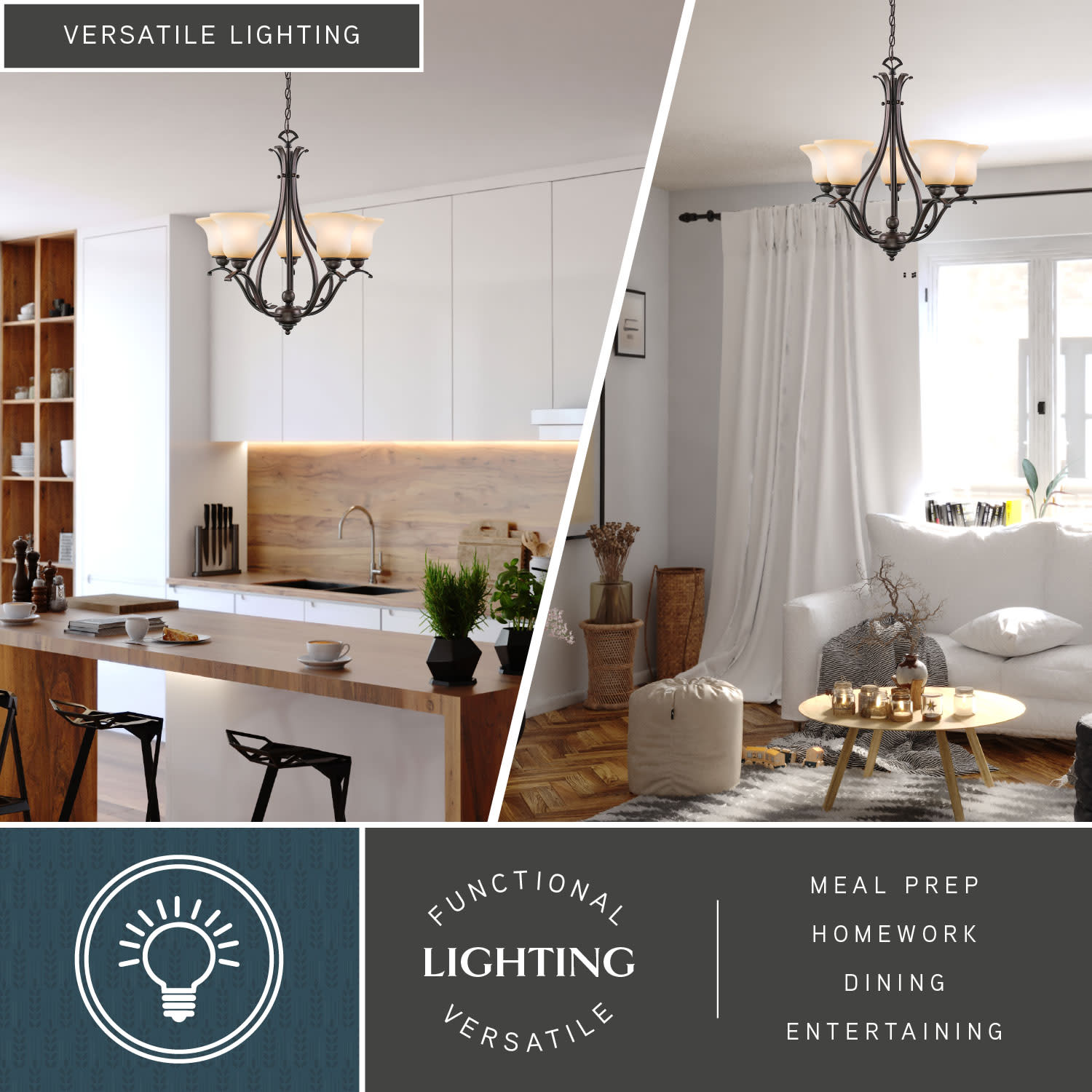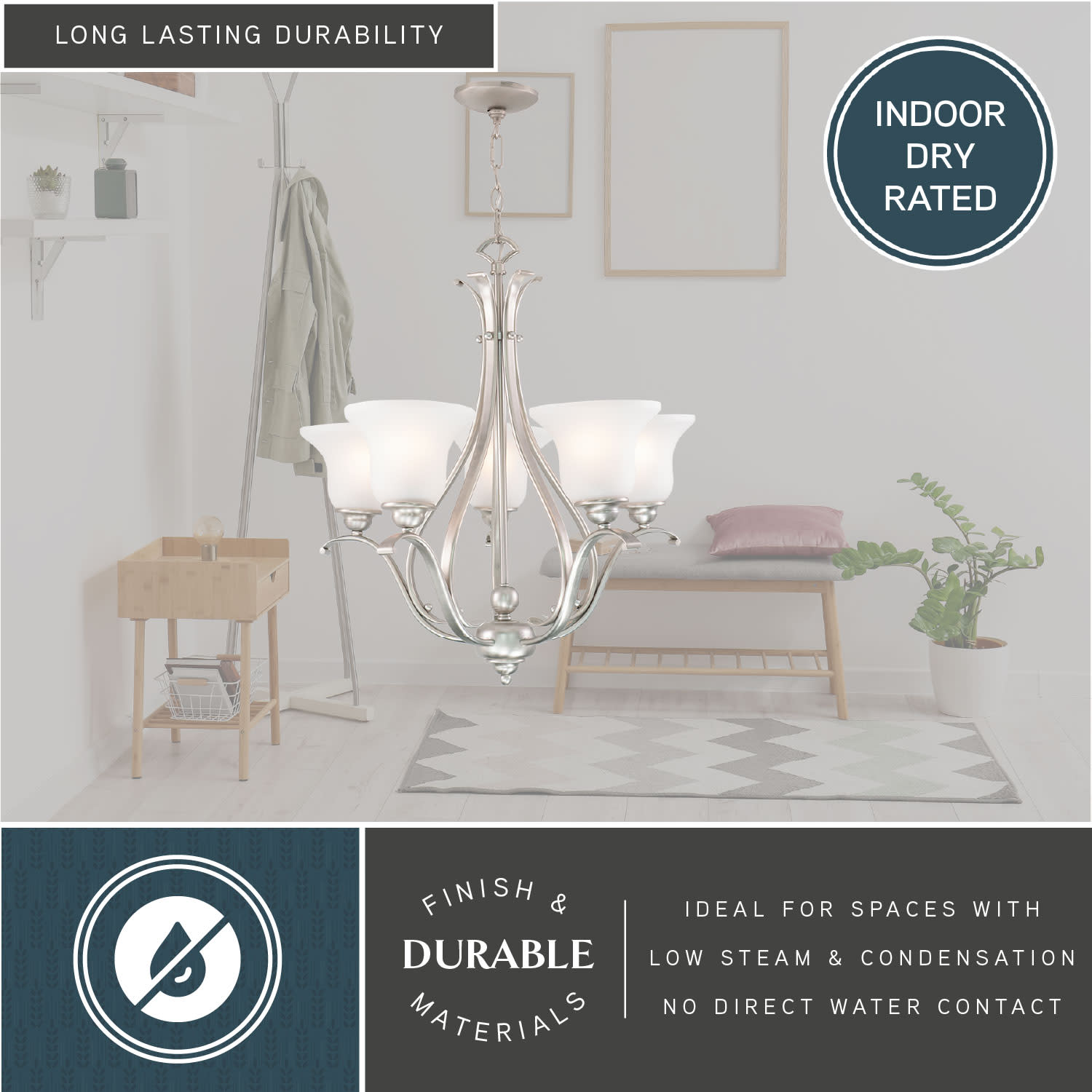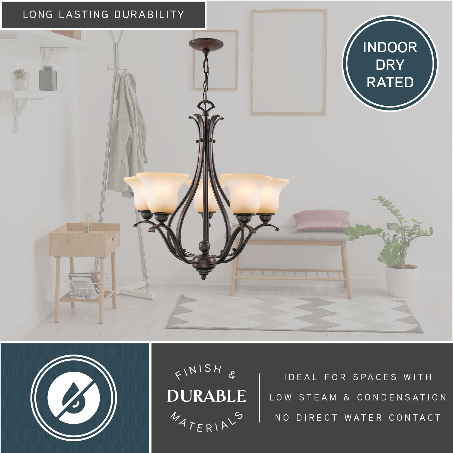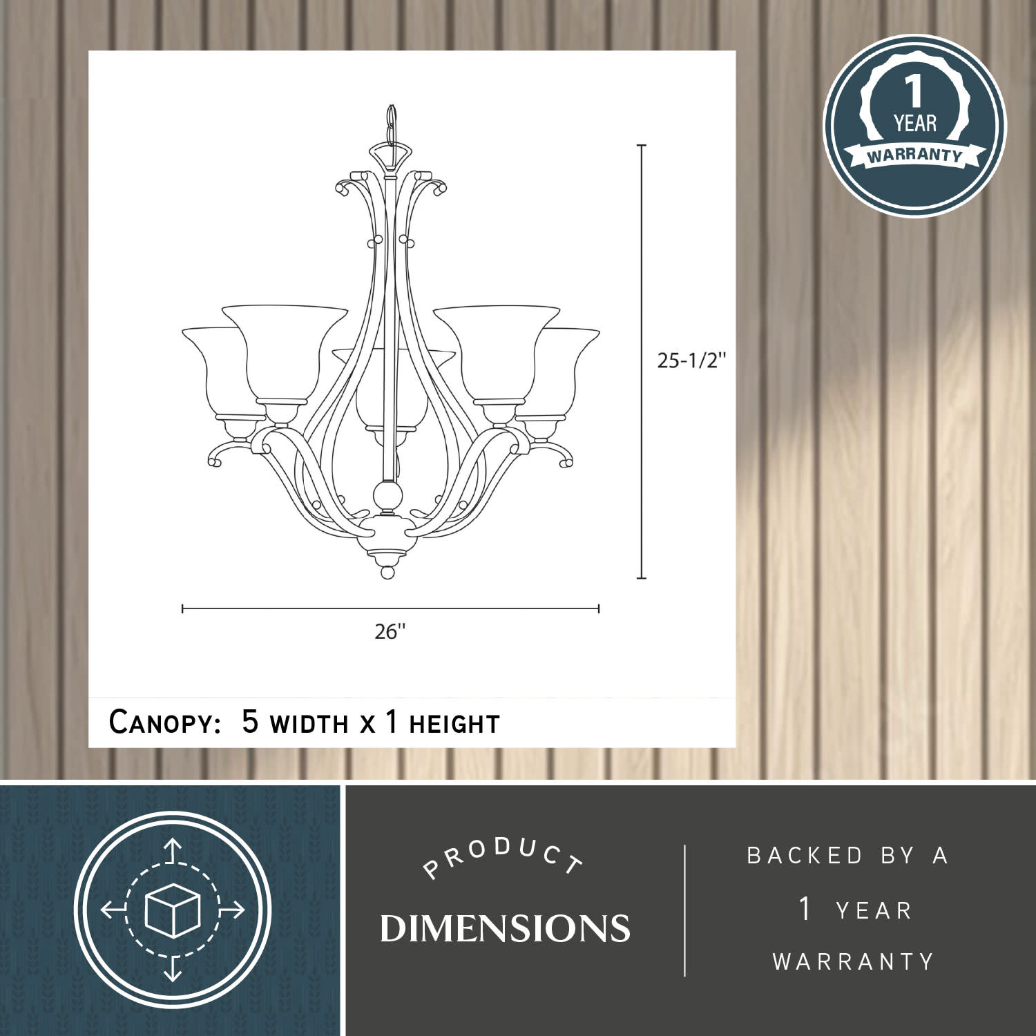 - Requires (5) medium (E26) 100 watt bulbs (not included)