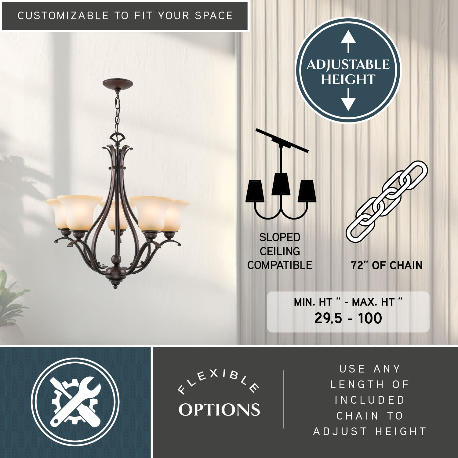 - Comes with 72" hanging chain