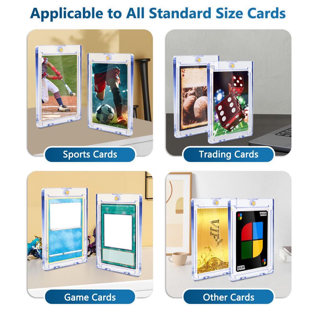 Standard Card Size: The Magnetic Card Holder fits the standard trading card size (2.5"x 3.5") up to 75PT point thickness. The trading card holder is suitable for baseball cards, basketball cards, football cards, hockey cards, and MORE.