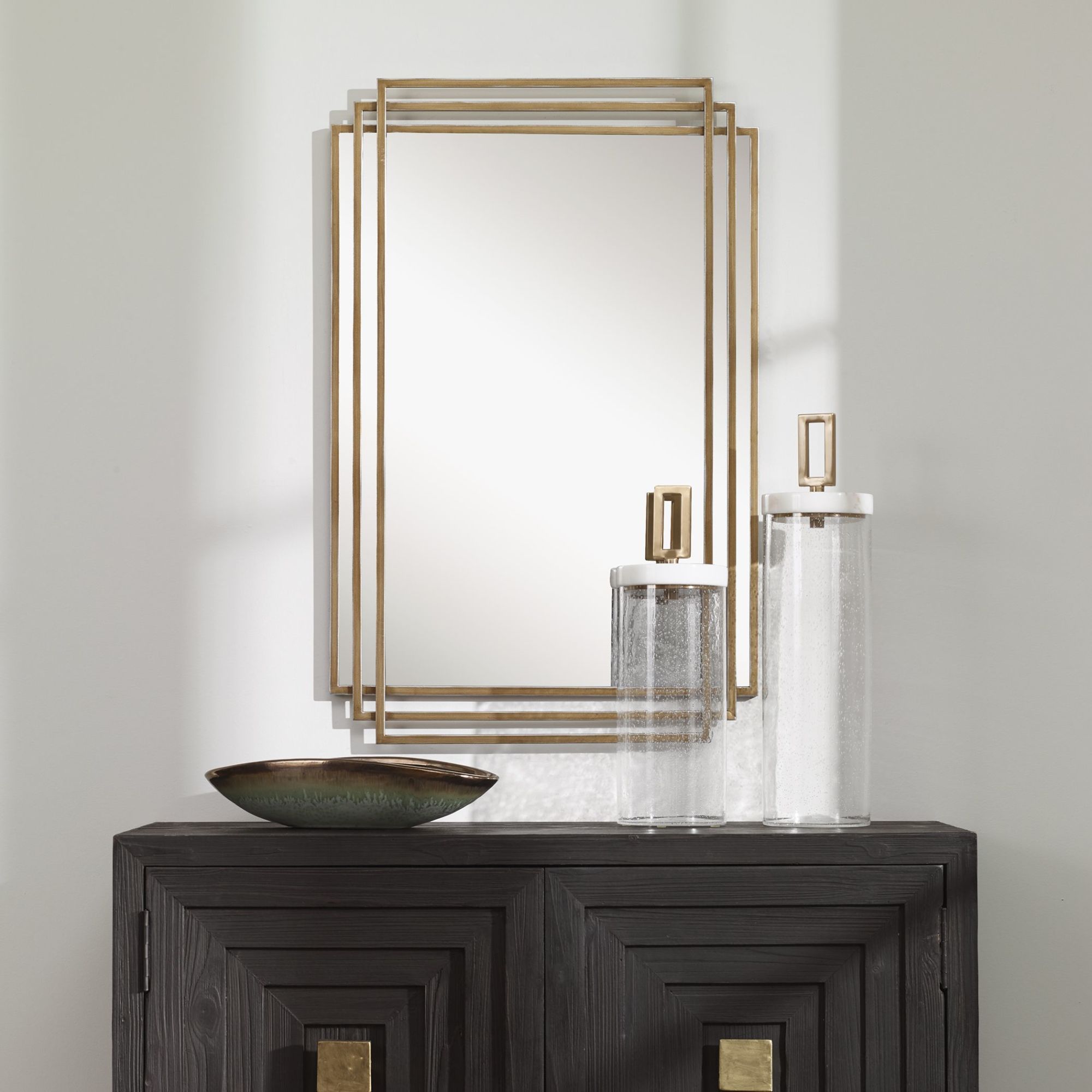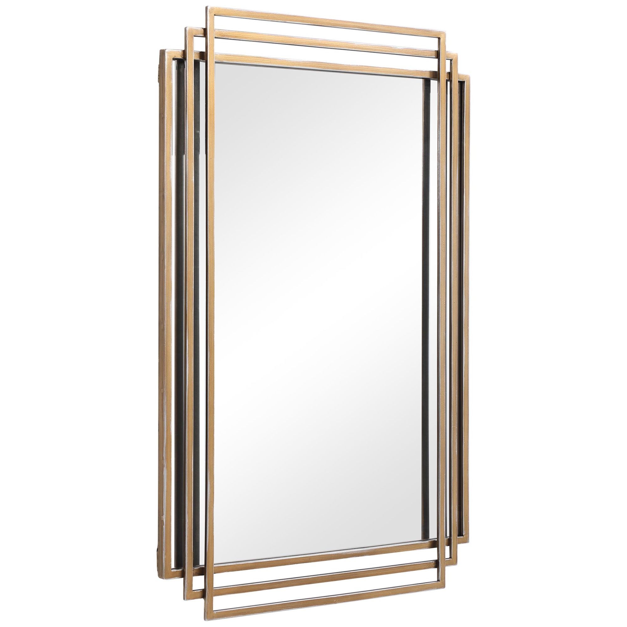 Item DescriptionShowcasing elegant lines and a timeless style, this mirror features an overlapping solid iron frame finished in a sophisticated distressed brushed gold with silver highlights