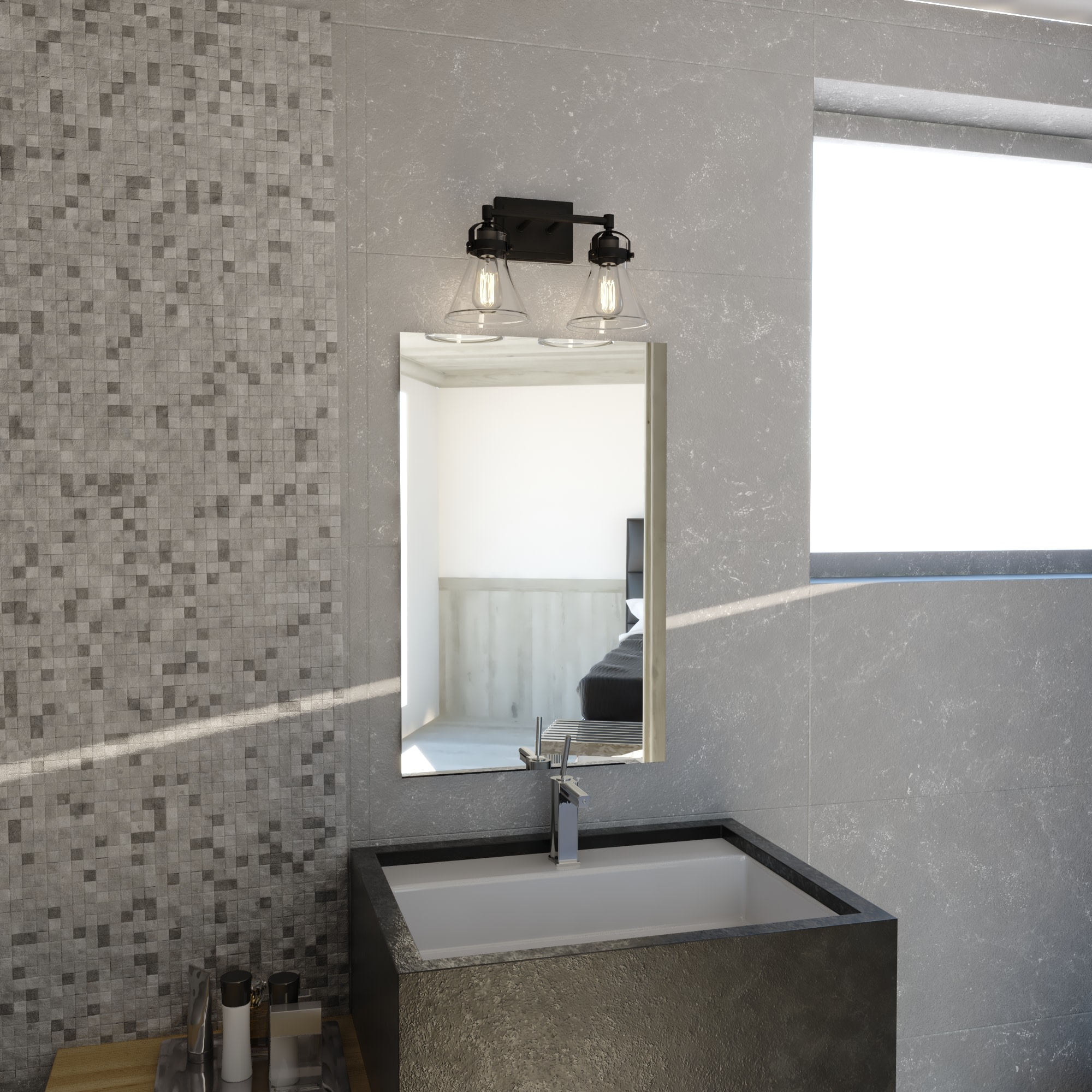 Item DescriptionA nod to farmhouse and industrial aesthetics are realized in the Mason vanity collection. Charcoal black accents offer a striking contrast to each funnel shaped shade. As they sit perched along a horizontal support, a brilliant show of light pours from each shade, creating a bright shine on the subject below. This 2-light vanity is ideal in any bath, or interior space where extra light is welcomed.