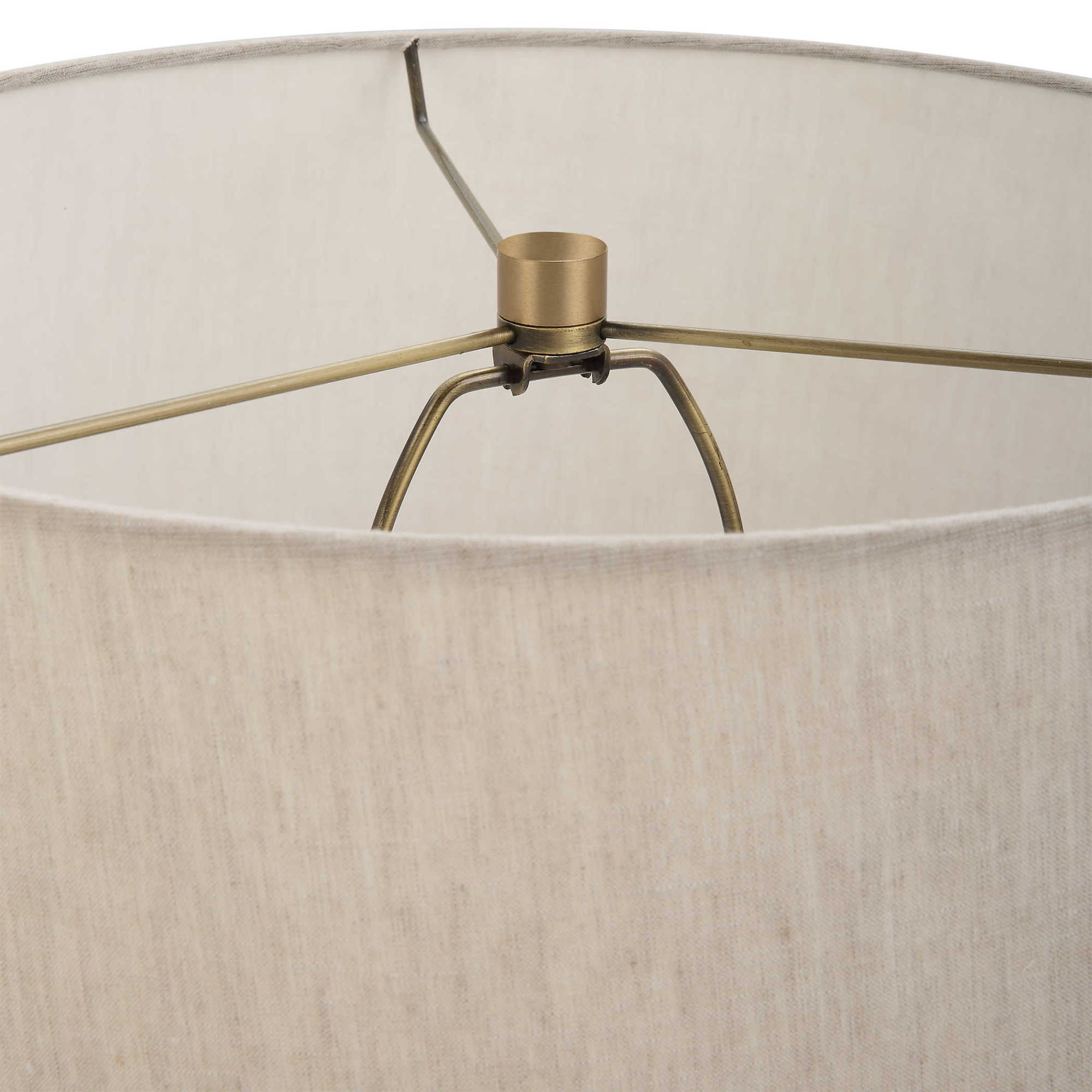- Includes an off-white fabric shade
