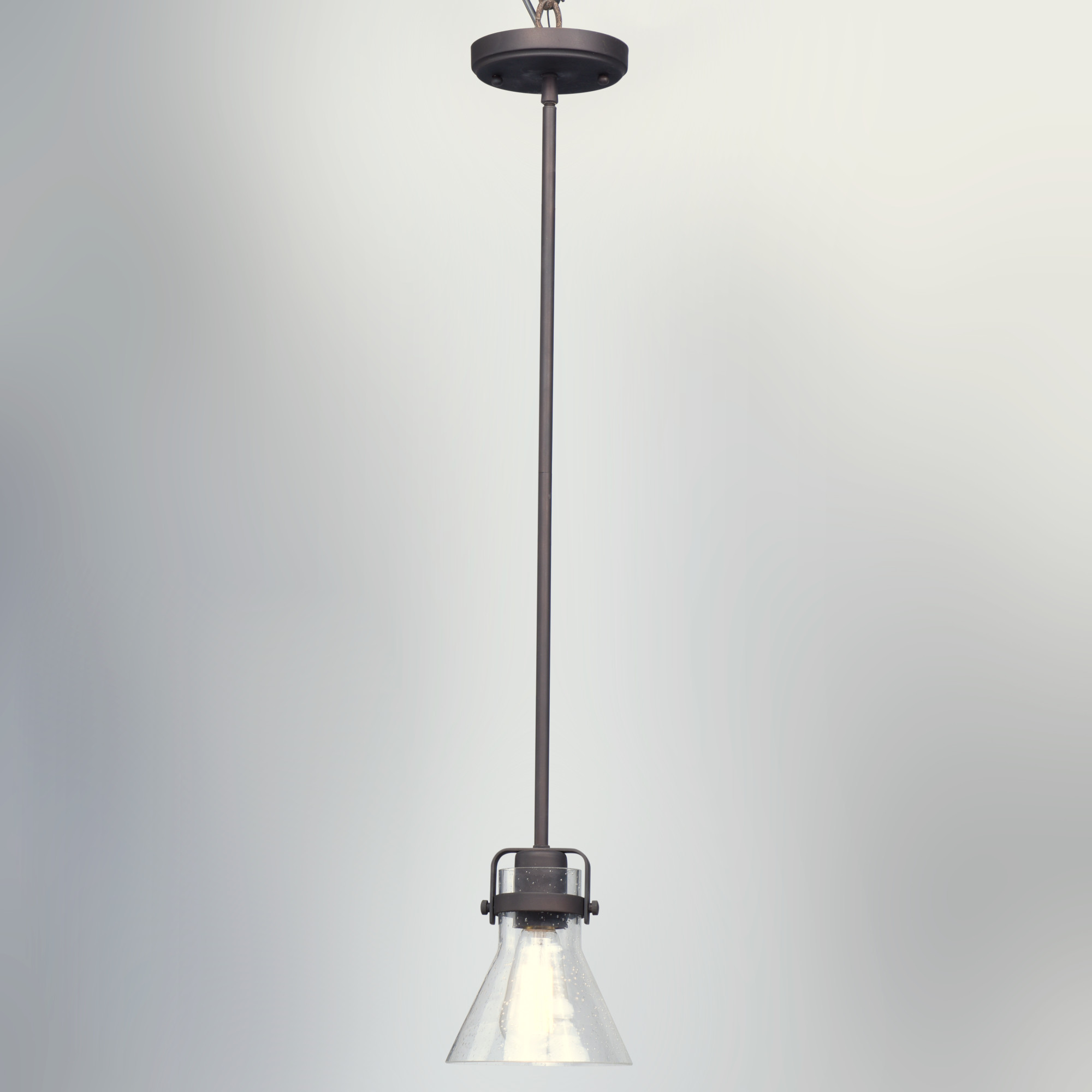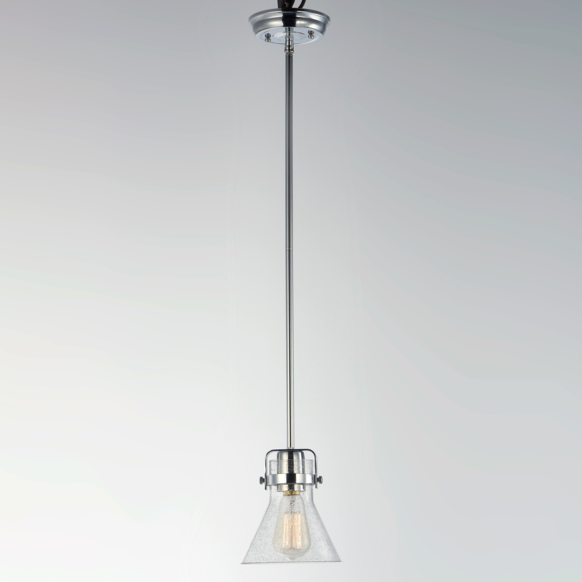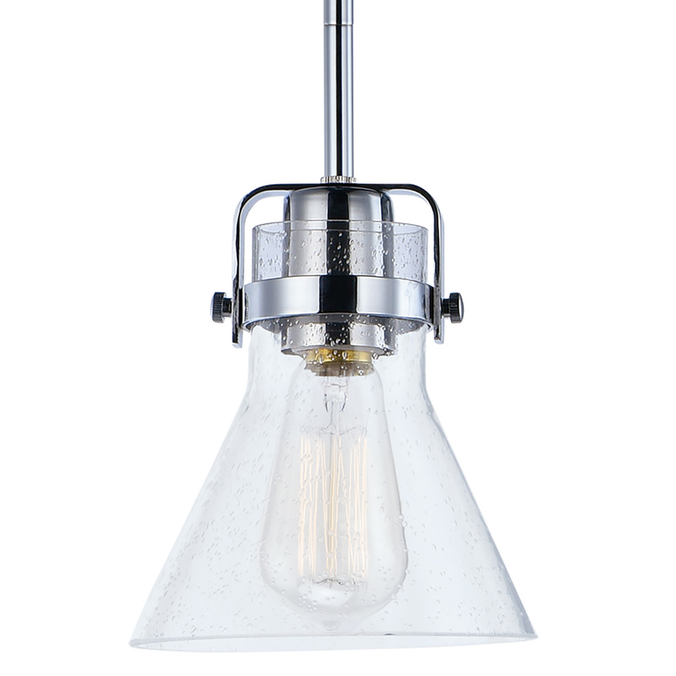 Item DescriptionThis nautical-inspired collection features Clear Seedy glass cones suspended by a yoke frame finished in Polished Chrome or Oil Rubbed Bronze. The clear glass offers abundant lighting and compliments the styling of the fixture. Make it a more industrial look by adding filament E26 light bulbs.