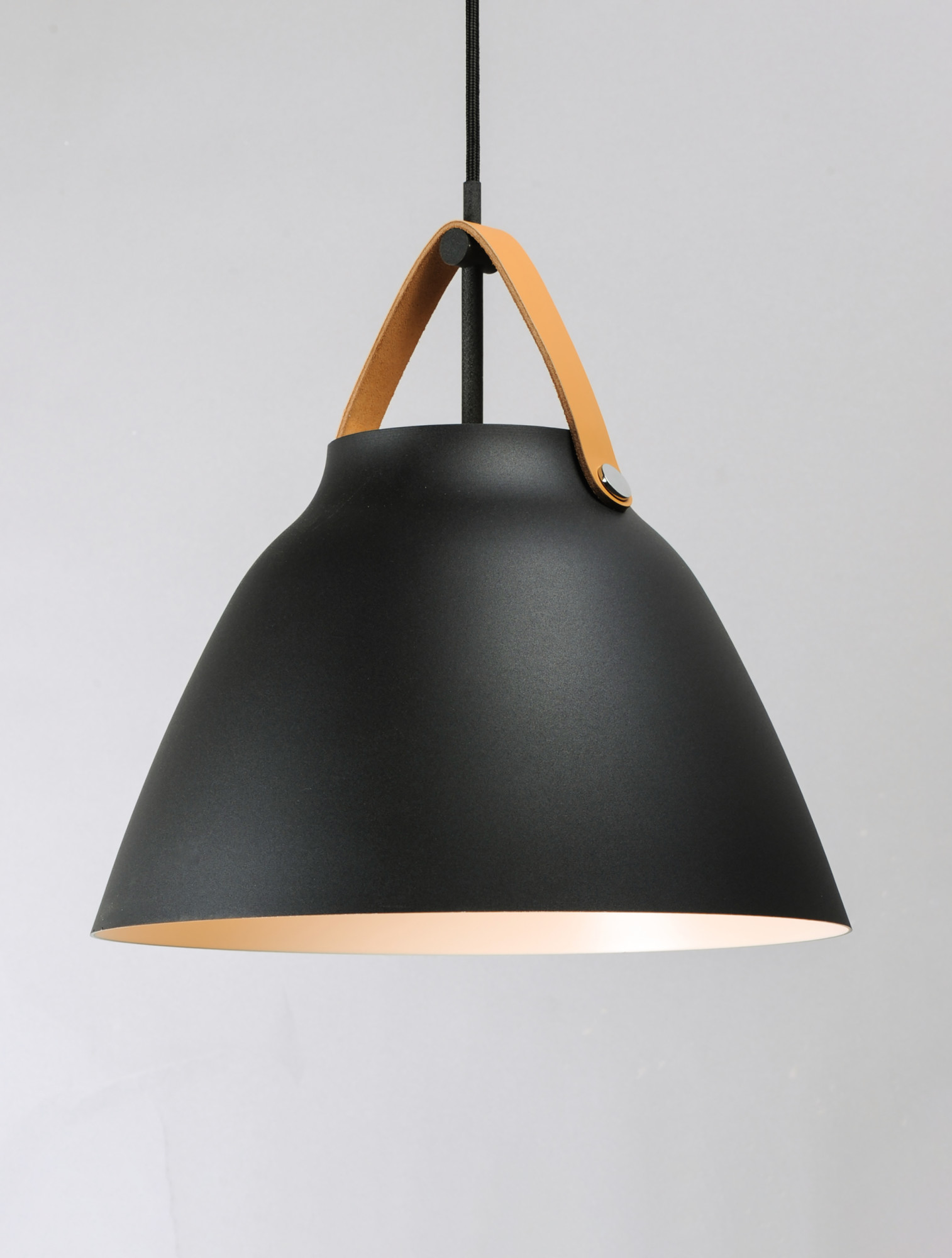 Item DescriptionInspired by classic Scandinavian design, these metal spun pendants of Black, White and Brushed Platinum are accented with natural elements like Walnut finished wood and Tan or Black leather straps.